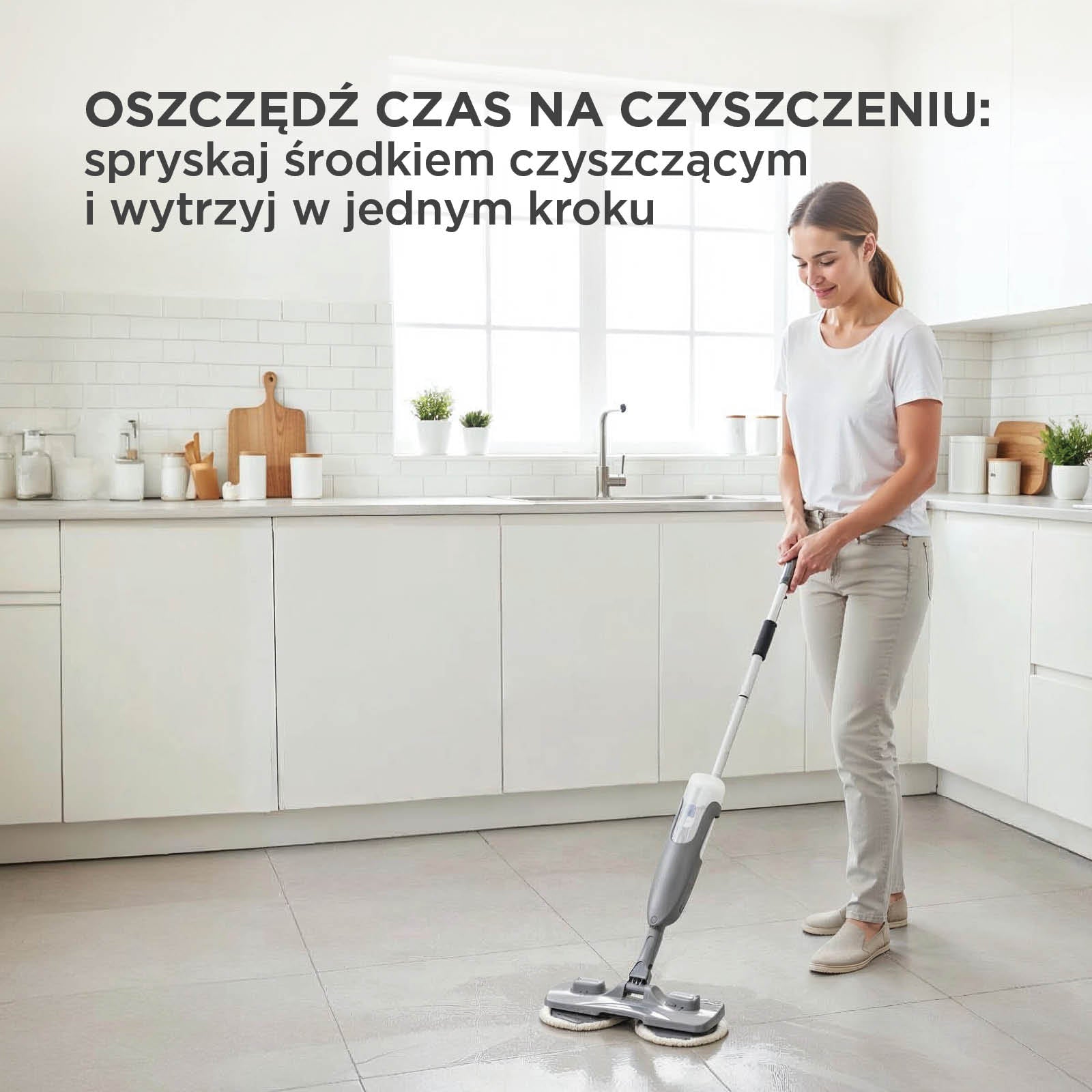 Rozlany sok? Okruszki po obiedzie? Bez paniki. Mop ze spryskiwaczem Vitapur Duo Clean to wszystko, czego potrzebujesz, aby w mgnieniu oka mieć nieskazitelnie czyste podłogi. Bez wiadra, bez prądu i bez schylania się. Wystarczy nacisnąć, spryskać i przetrzeć dwiema 360° obrotowymi ściereczkami z mikrofibry. Parkiet, płytki, panele laminowane czy winyl – lekki i skuteczny mop wyczyści wszystko. W przeciwieństwie do tradycyjnych mopów Duo Clean nie wymaga wiadra i nie pozostawia mokrej podłogi. W kilka minut Twój dom będzie lśnił, a Ty będziesz mógł cieszyć się filiżanką kawy, zabawą z dziećmi lub po prostu spokojem, jaki daje uporządkowany dom. Duo Clean – bo zasługujesz na czystość bez wysiłku i więcej czasu na to, co kochasz.