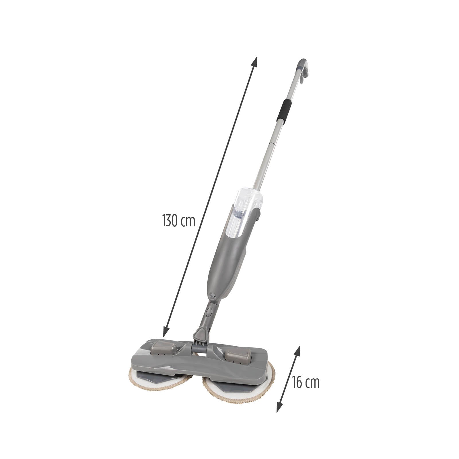 Głowica czyszcząca jest wyposażona w dwie ściereczki z mikrofibry, które mogą obracać się o 360°. Dzięki temu bez wysiłku wyczyścisz powierzchnie pod kanapą, wokół mebli i w każdym rogu, do którego zwykłe mopy nie docierają. Dzięki lekkiej konstrukcji prowadzenie mopa to czysta przyjemność, a ruchomy uchwyt pozwala na sprzątanie bez zbędnego schylania się i garbienia..