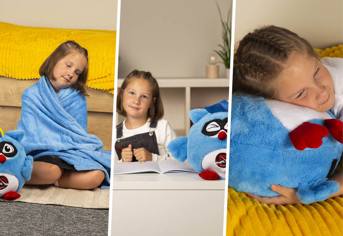 Dzieci i rodzice, na zdrowie! Każdą sówkę można wykorzystać na co najmniej 3 sposoby: jako mięciutką zabawkę, puszystą poduszkę lub ciepły kocyk. Wystarczy otworzyć sowę na brzuszku i wyciągnąć kocyk. Idealny do użytku w domu, w samochodzie czy na wakacjach.