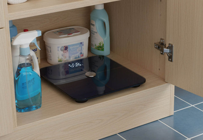 Smukła powierzchnia z hartowanego szkła z podświetlanym wyświetlaczem LED idealnie wpisuje się w wystrój nowoczesnej łazienki. Antypoślizgowe nóżki zapewniają bezpieczne ważenie, a kompaktowa konstrukcja umożliwia wygodne przechowywanie pod szafką lub łóżkiem.