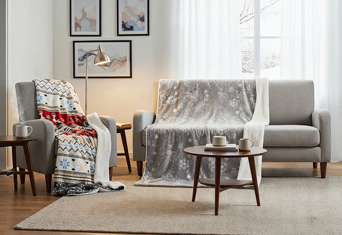 • Dwustronny koc w stonowanych kolorach lub ze wzorem zimowym elegancko dopełni każde wnętrze.