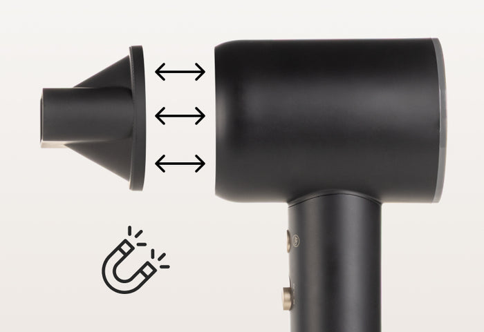 Magnetyczna nasadka do stylizacji mocuje się szybko i precyzyjnie, umożliwiając ukierunkowany strumień powietrza dla piękniejszych i bardziej zdefiniowanych fryzur.
