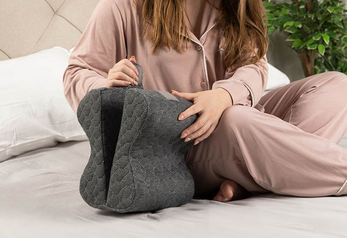 - Ergonomiczny kształt poduszki na kolana pomaga utrzymać prawidłowe ustawienie kręgosłupa i zmniejsza nacisk na kolana, dolną część pleców i biodra.