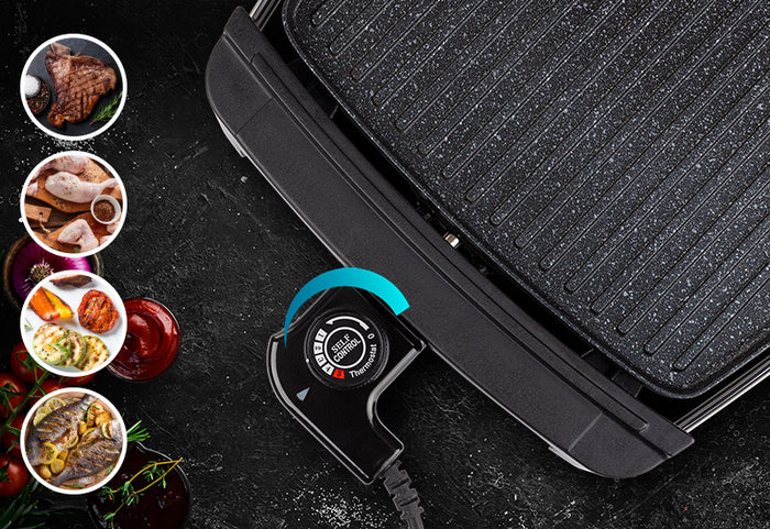 Duża płyta grillowa ma gładką i rowkowaną powierzchnię, dzięki czemu możesz łatwo wybrać miejsce, w którym chcesz przygotować mięso, warzywa, jajka, burgery, ryby, a nawet naleśniki.
