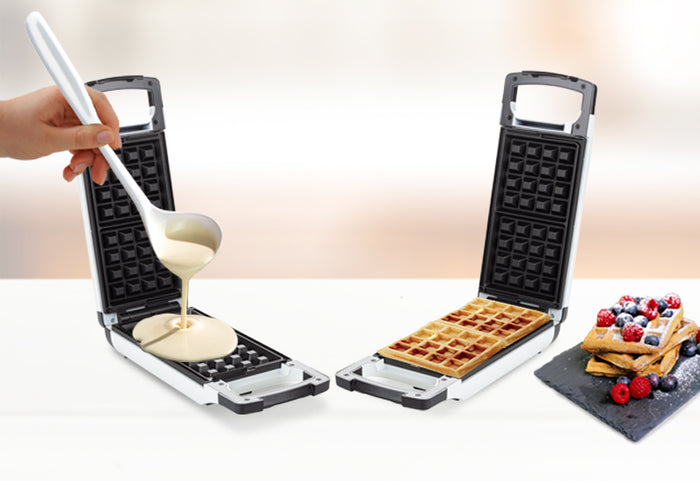 Możesz przygotować 2 gofry belgijskie w ciągu zaledwie 3-5 minut. Natychmiastowa rozkosz, szybkie rezultaty i eksplozja smaku.