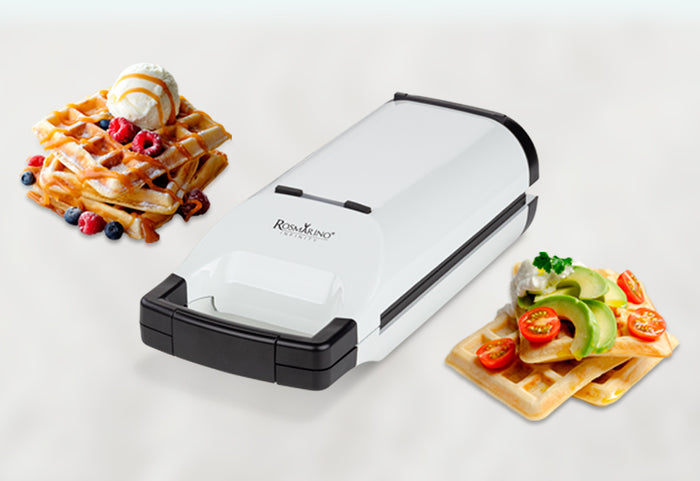 Najlepsze wypieki nie zawsze wychodzą prosto z pieca. Odkryj różnorodność, jaką może Ci zaoferować ta gofrownica! Używaj słodkich lub klasycznych ziemniaków, ciecierzycy lub cukinii. Ilość sposobów, na które można przygotować gofry nie zna granic - Twoje wypieki mogą być niesłodkie lub słodkie. Polej je słodkim syropem lub posyp niesłodką posypką i rozkoszuj się niesamowitym smakiem!