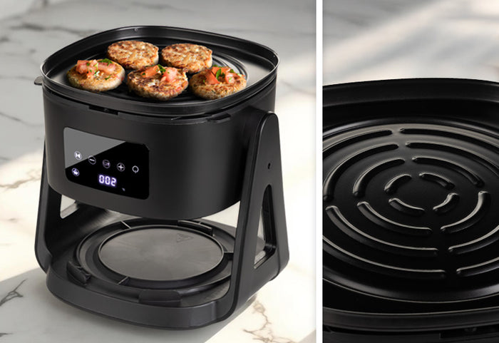 Dołączona żeliwna płyta grillowa zapewnia autentyczne ślady przypieczenia i intensywny smak, który uwielbiasz. Przygotuj idealne steki, warzywa lub ryby – bez dymu, zbędnego oleju i długiego czyszczenia..