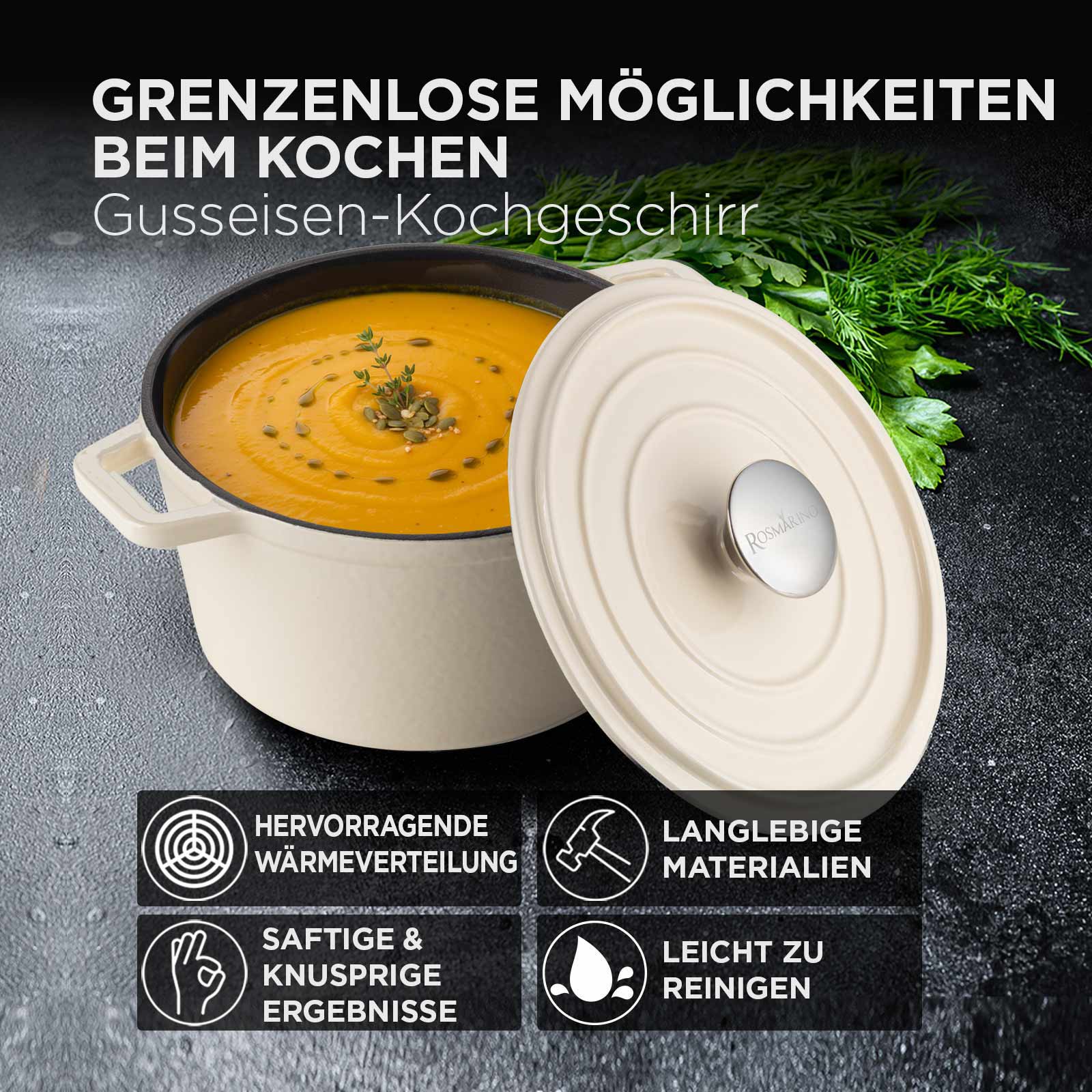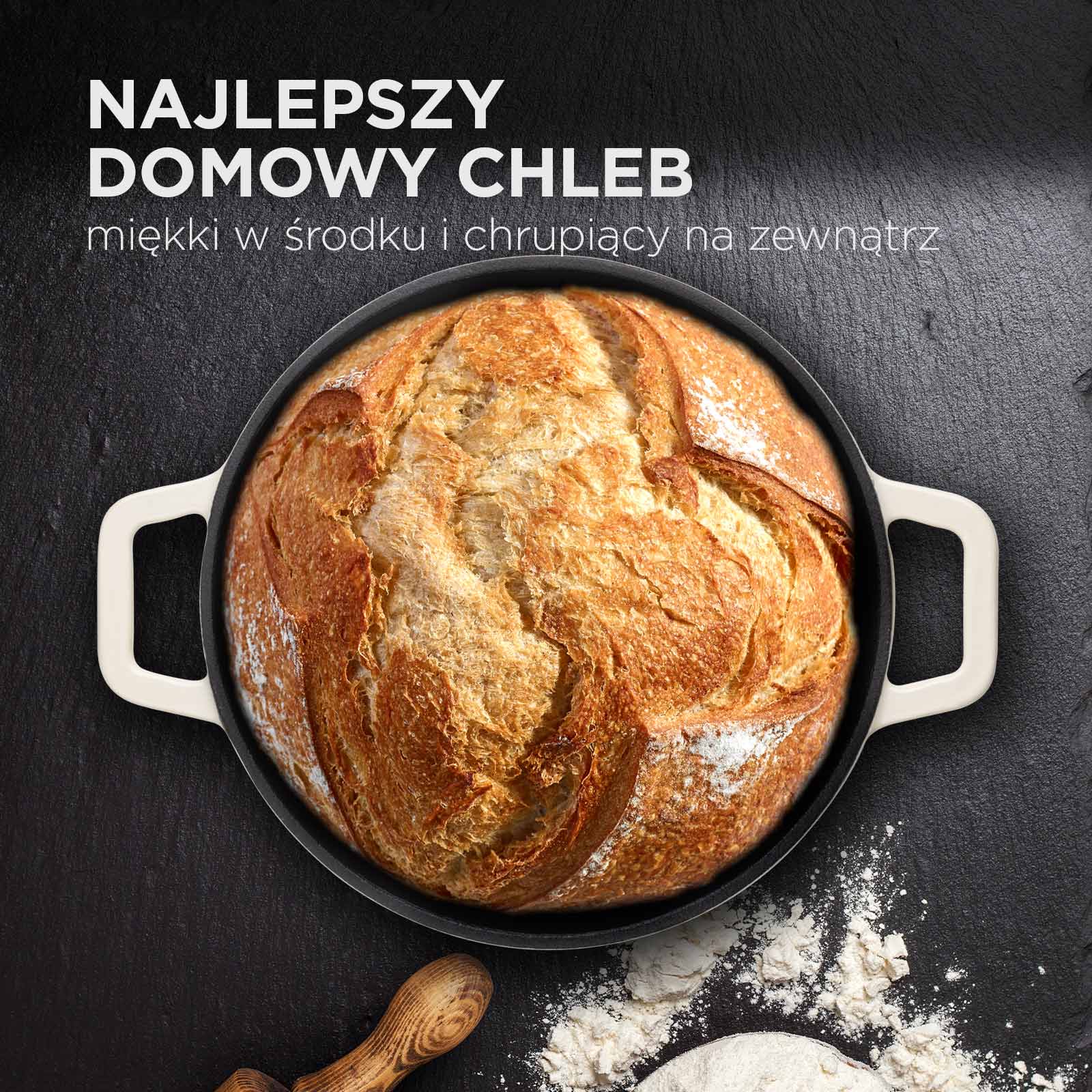 Piecz najbardziej miękkie domowe smakołyki, takie jak chleb, bułki mleczne i inne pyszności, w żeliwnym garnku. W ten sposób możesz łatwo uniknąć dodawania garnka z wodą do piekarnika, a skórka nadal będzie chrupiąca. Świetne rozwiązanie dla entuzjastów pieczenia, którzy nie mają piekarnika z funkcją pary.