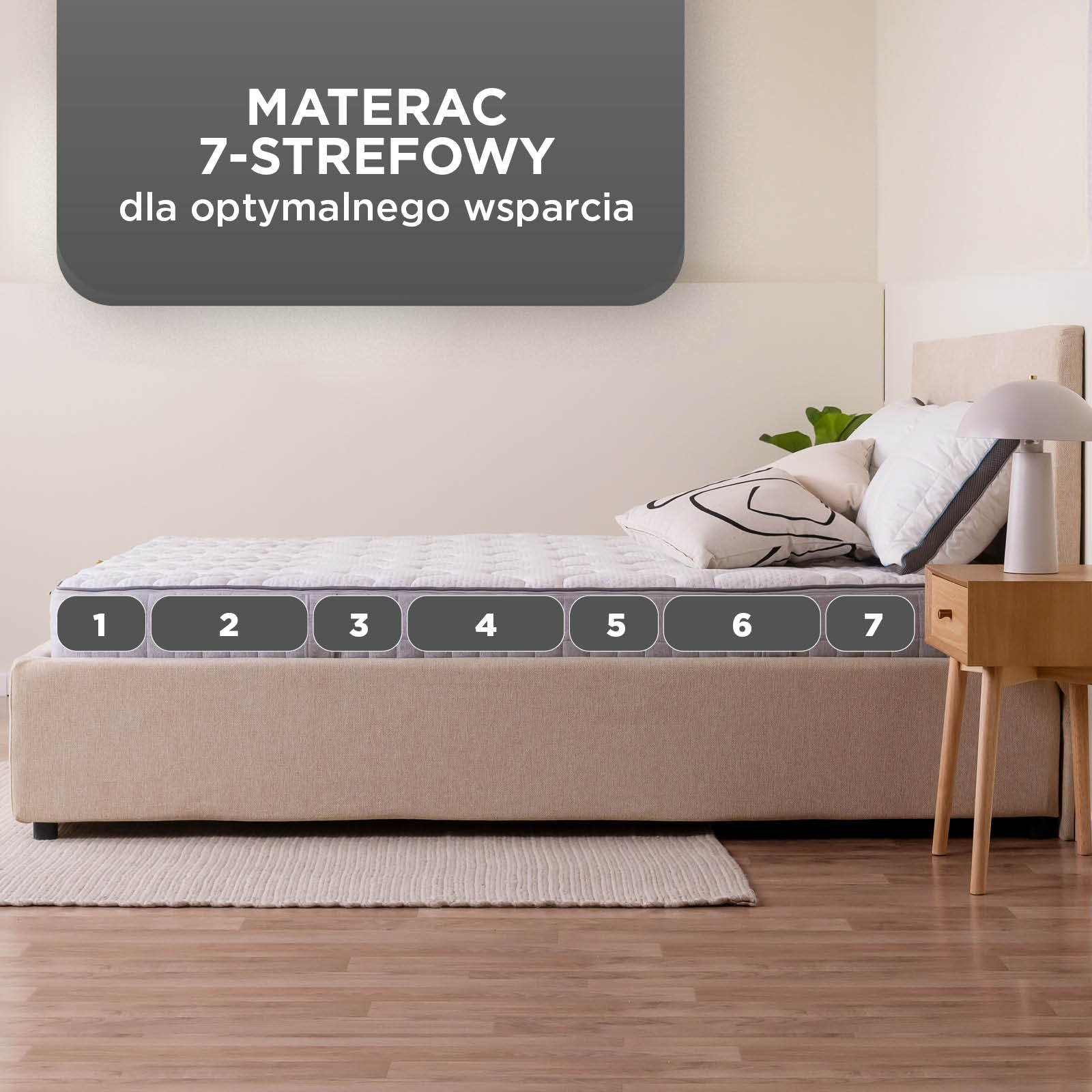7 stref wspiera ciało we wszystkich punktach kontaktu z powierzchnią spania.