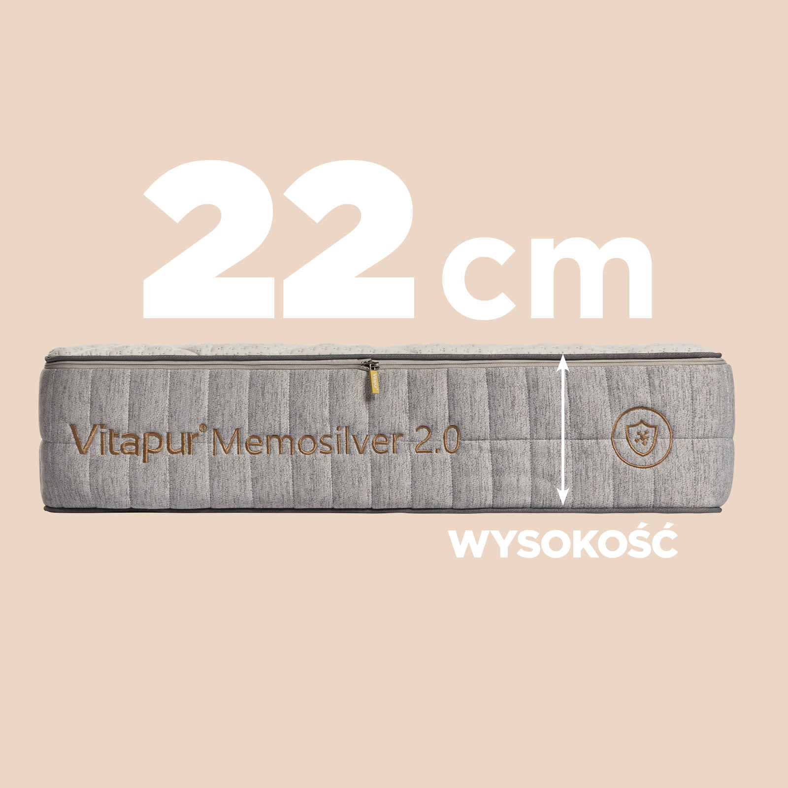MemoSilver 2.0 to znacznie ulepszona wersja naszego najpopularniejszego materaca, wynosząca komfort i wsparcie na wyższy poziom – dosłownie. Teraz o wysokości 22 cm, materac ten łączy zaawansowaną technologię komfortu z twardą, wspierającą pianką, aby zapewnić pełne doświadczenie snu.