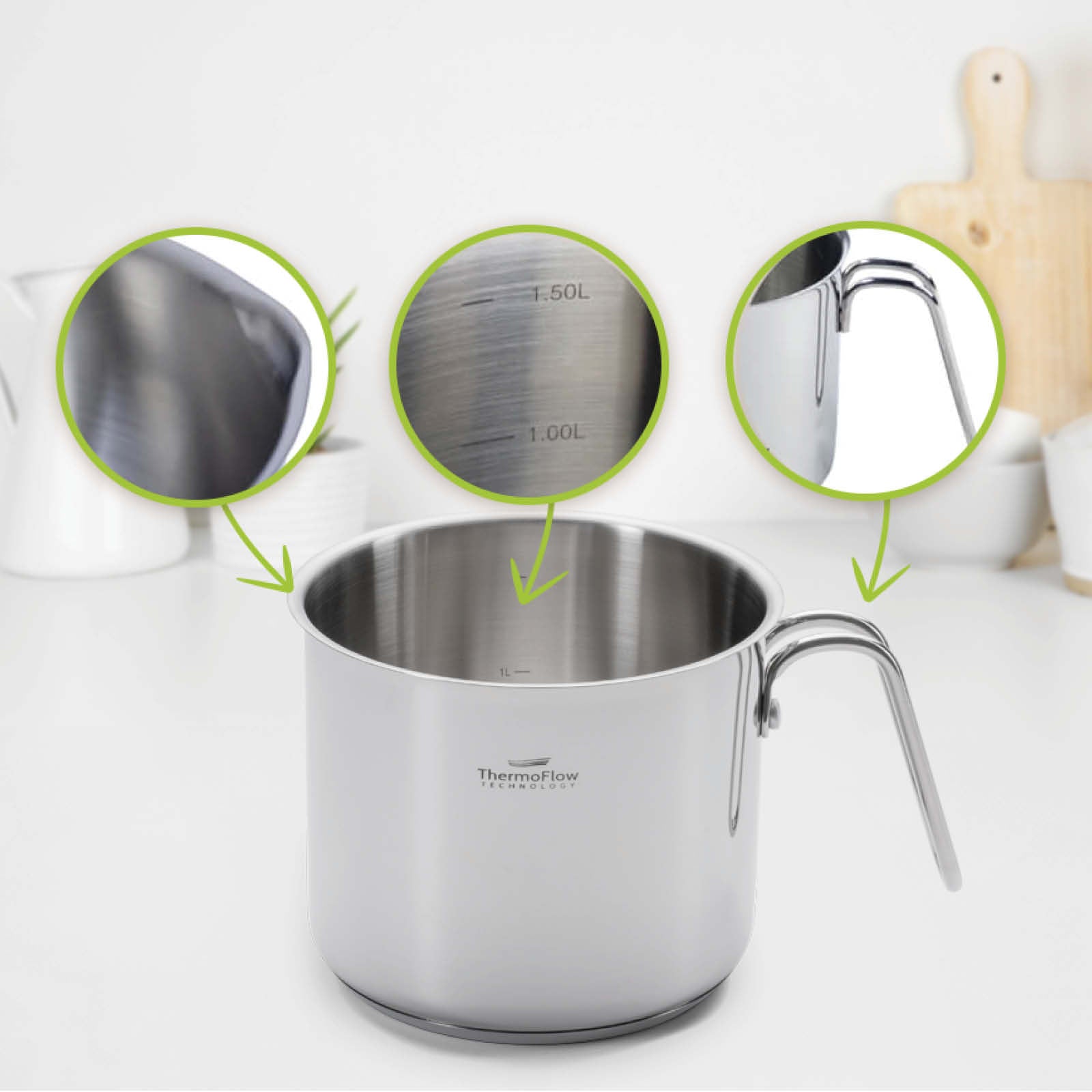 Rosmarino stalowy garnek do mleka Pour&Cook II – 1,7 L, 14 cm