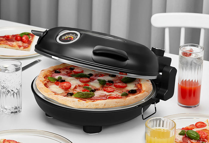 Z tym urządzeniem pizza będzie gotowa w kilka minut! Moc 1200 W zapewnia szybkie nagrzewanie, a kamień o średnicy 30 cm idealnie nadaje się na rodzinny posiłek lub spotkanie z przyjaciółmi. Szybciej niż z dostawą i nieporównywalnie smaczniej!