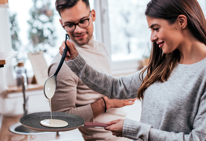 W każdej kuchni powinna znaleźć się przynajmniej jedna świetna patelnia do naleśników. Zaletą każdej świetnej jest lekki materiał, który jednocześnie jest niezwykle trwały, a także doskonała dystrybucja ciepła i powłoka nieprzywierająca. Dzięki temu naleśniki są jeszcze bardziej puszyste, doskonałe i równomiernie przyrządzone.