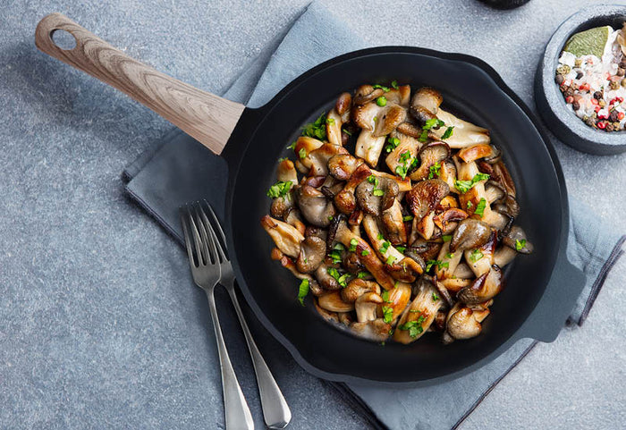 Korpus naczynia składa się z warstwy odlewanego aluminium, która jest grubsza, cięższa i bardziej energooszczędna, co zapewnia jeszcze dłuższą żywotność. Naczynia z odlewu aluminiowego szybciej się nagrzewają, więc jedzenie pozostaje gorące dłużej, nawet po zakończeniu gotowania. Wewnątrz odlewane aluminium pokryte jest centralną powłoką mineralną zapewniającą wytrzymałość i odporność, następnie powłoką z gładkich cząstek mineralnych oraz ostatnią warstwą ochronną, która zmniejsza przywieranie i umożliwia gotowanie z minimalną ilością tłuszczu.