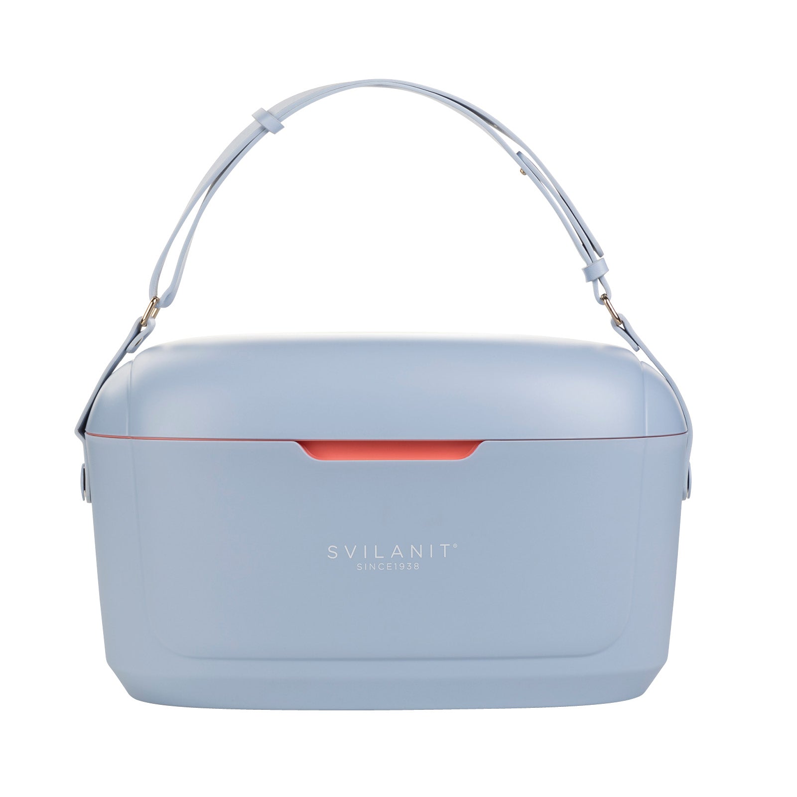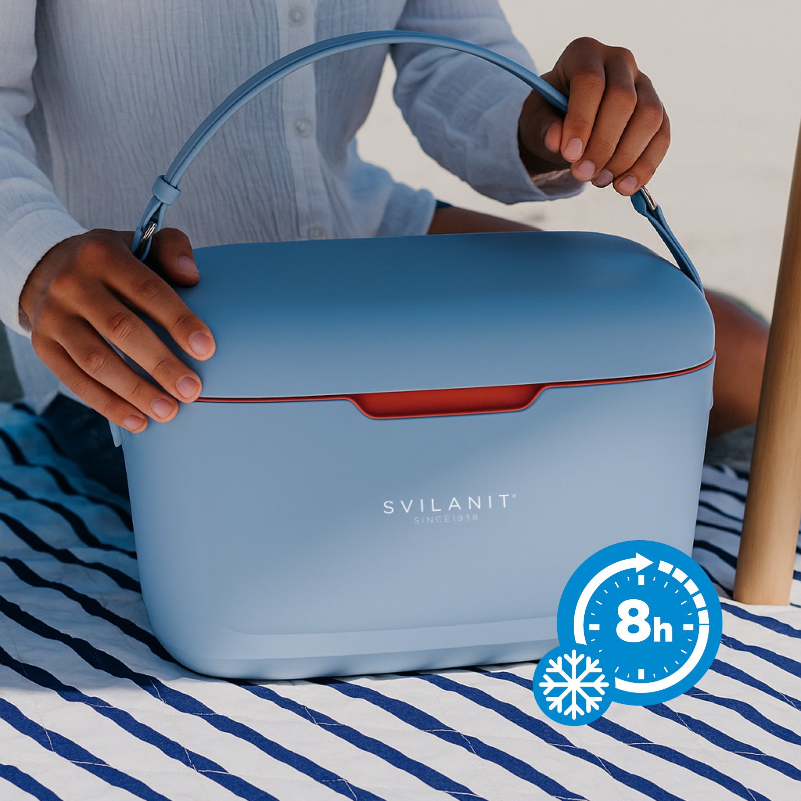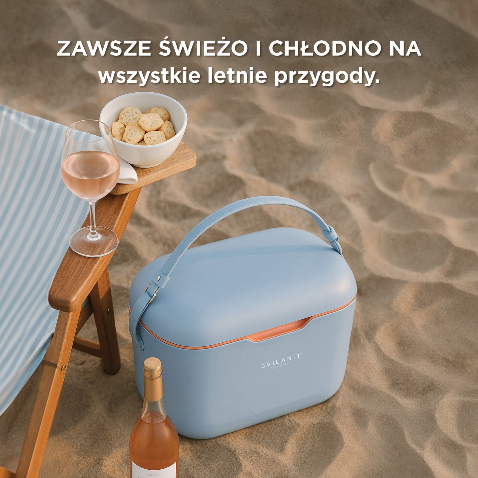 Zapomnij o miękkich torbach chłodzących, które łatwo się przewracają i nieatrakcyjnych chłodziarkach, które chowasz pod ręcznikiem! Elegancka i wytrzymała chłodziarka Svilanit jest Twoim niezastąpionym towarzyszem w ciepłe dni. Niezależnie od tego, czy wybierasz się na rodzinny piknik, romantyczną wycieczkę nad morze, czy po prostu potrzebujesz niezawodnego codziennego chłodzenia, ta praktyczna chłodziarka zapewnia, że ​​Twoje napoje pozostaną lodowate, a jedzenie świeże przez wiele godzin. Dwa dołączone wkłady chłodzące zapewniają jeszcze dłuższe i intensywniejsze chłodzenie. Dostępna w 2 rozmiarach i 2 pięknych letnich kolorach chłodziarka będzie czymś, czym będziesz się z dumą chwalić, a jej noszenie jest łatwe dzięki regulowanemu i wygodnemu paskowi na ramię.