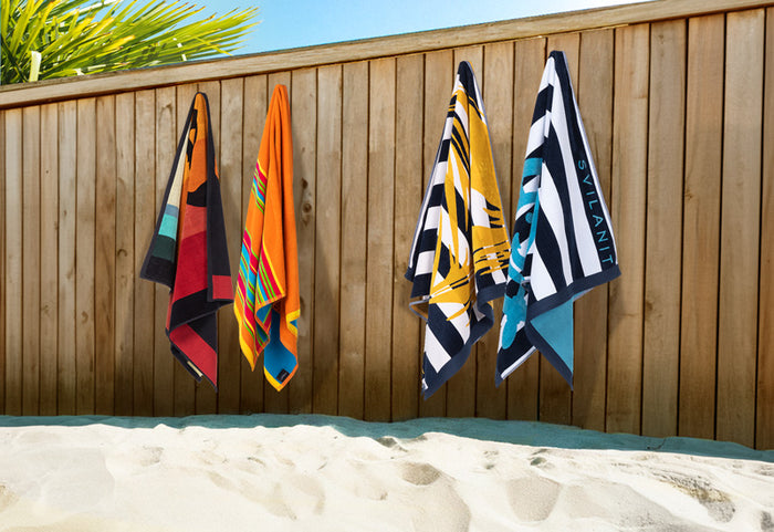 Ręczniki plażowe Svilanit łączą doskonałą funkcjonalność z nowoczesnym designem. Dostępne w wielu atrakcyjnych wzorach, z pewnością wyróżnią się na plaży lub przy basenie. Pozwól, aby ręcznik stał się modnym dodatkiem odzwierciedlającym Twój osobisty styl i przyciągającym spojrzenia – bez względu na to, czy opalasz się, czy odpoczywasz w cieniu.