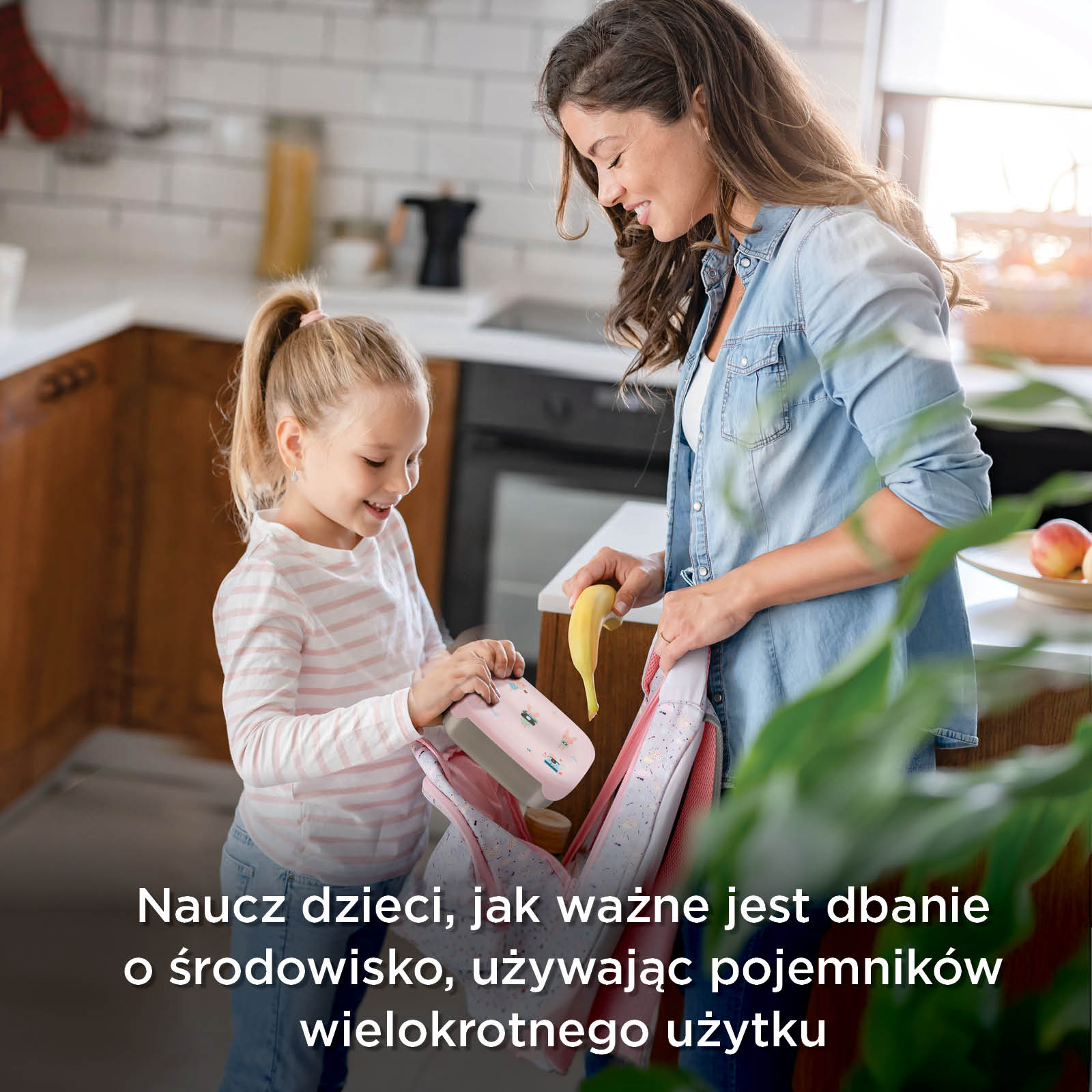 - Ucz dzieci znaczenia ochrony środowiska dzięki wielokrotnemu użyciu pudełka.