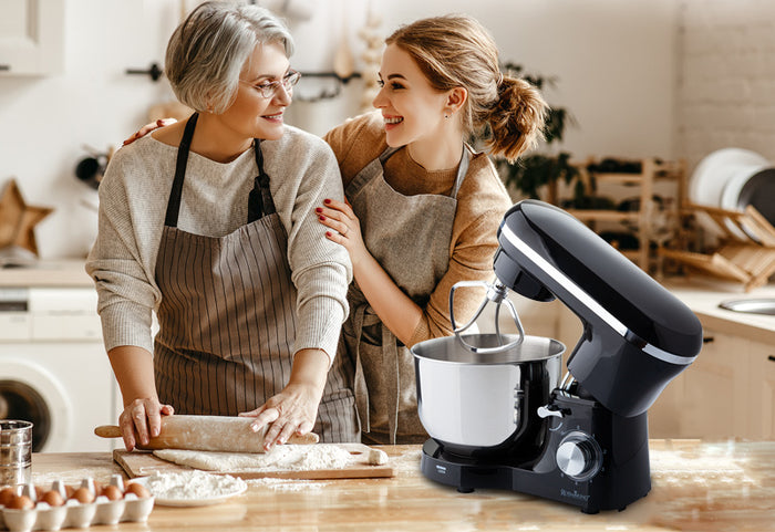 Zaoszczędź czas przy każdym pieczeniu lub gotowaniu i poznaj mikser stojący, który będzie Twoim nowym pomocnikiem w kuchni. Silnik o mocy 1400 W będzie niezastąpiony podczas pieczenia ciasteczek, przygotowywania deserów, robienia chleba lub ciasta na pizzę oraz ubijania idealnej śmietany.