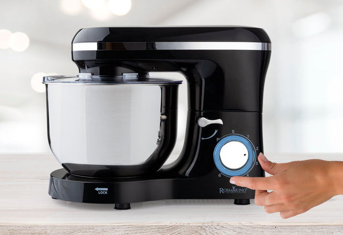 Mikser stojący Rosmarino Infinity PRO będzie Twoim niezastąpionym narzędziem podczas pieczenia każdego rodzaju ciasteczek, deserów, robienia chleba lub ciasta na pizzę, a także podczas przygotowywania innych smakołyków. Wyróżnia go ulepszona wydajność silnika 1400 W do profesjonalnego mieszania składników. Do wyboru masz 6 różnych prędkości oraz dodatkową funkcję pulsacyjną. W zestawie z 3 mieszadłami: drucianą trzepaczką, hakiem spiralnym i mieszadłem w kształcie K. Z podświetleniem LED dla lepszej widoczności ustawień. Mikser jest solidny i będzie służył przez kolejne pokolenia.