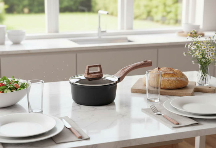 Niezastąpiony rondelek z pokrywką umożliwia łatwiejsze i szybsze przygotowanie różnorodnych potraw, które zachwycą zarówno początkujących, jak i doświadczonych kucharzy. Dzięki jego wszechstronnemu zastosowaniu mogą Państwo gotować, smażyć lub piec różnorodne dania – wszystko w jednym naczyniu!