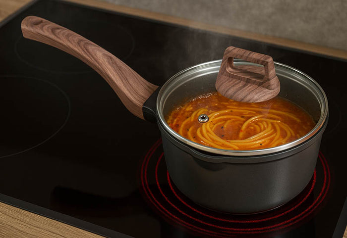 Dzięki wyjątkowym właściwościom przewodzącym materiałów naczynie nie musi być przegrzewane, co zapewnia maksymalną wydajność i szybkie gotowanie. Na płytach indukcyjnych zaleca się używanie przy dwóch trzecich mocy płyty. Używaj naczynia na płycie indukcyjnej o średnicy dopasowanej do średnicy jego dna.