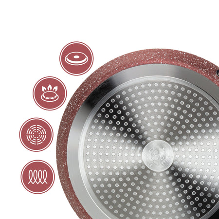 - Nieprzywierająca, chropowata powłoka mineralna pozwala na gotowanie z minimalną ilością tłuszczu, dzięki czemu Twoje potrawy smakują zdrowo i zachowują wszystkie składniki odżywcze podczas gotowania.