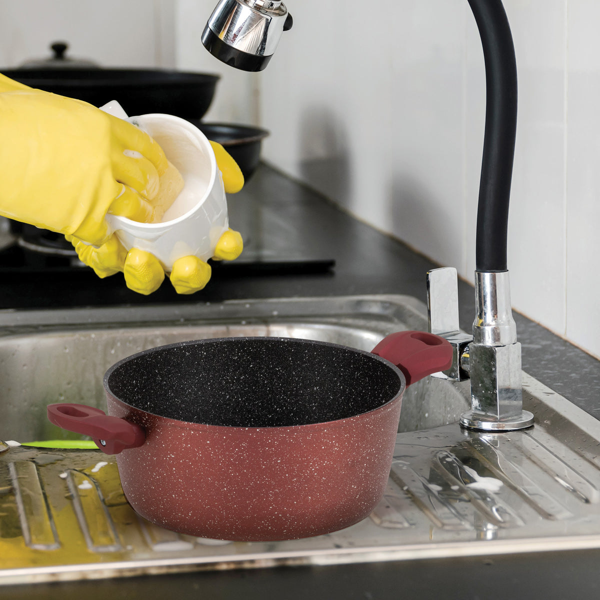 Garnek Lava Stone Grape należy do grona garnków premium z innowacyjną i zaawansowaną technologicznie chropowatą powłoką mineralną. Nieprzywierająca powłoka w wyglądzie kamienia wulkanicznego pozwala na naturalne gotowanie z niewielką ilością tłuszczu. Dzięki temu potrawy zachowują wszystkie niezbędne witaminy i minerały, których nasz organizm potrzebuje do zdrowego trybu życia. Nadaje się do wszystkich płyt kuchennych, w tym indukcji. Dzięki powłoce nieprzywierającej zarówno wewnątrz, jak i na zewnątrz naczyń, konserwacja i czyszczenie w zmywarce są jeszcze łatwiejsze. Wszystkie naczynia kuchenne z serii Lava Stone Grape oparte są na wielowarstwowej kompozycji, która zapewnia długą żywotność oraz wysoki poziom odporności i trwałości.