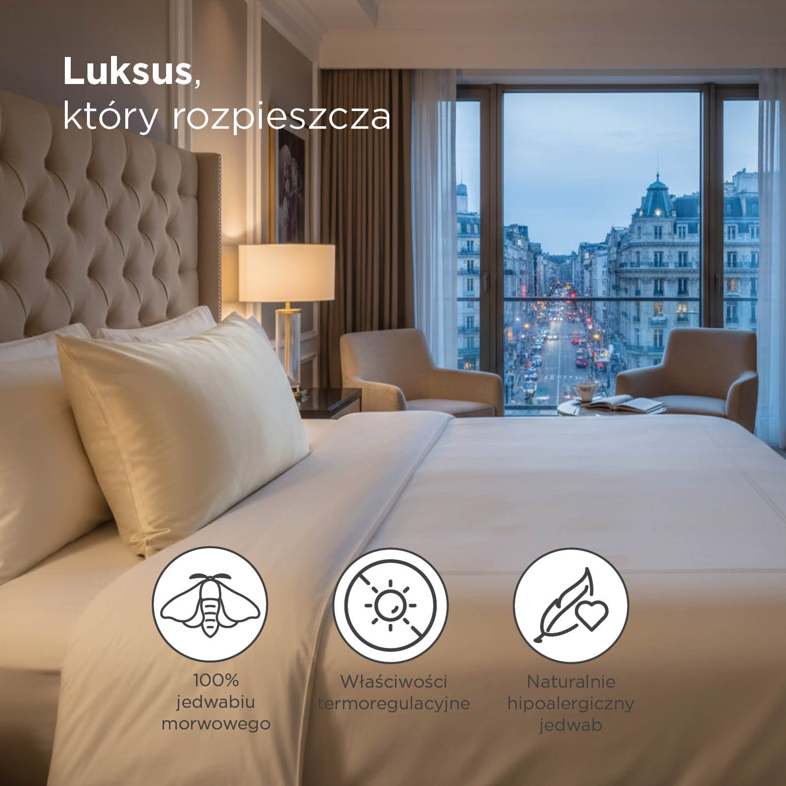 Marzniesz w nocy lub budzisz się spocony? Zwykłe tkaniny nie oddychają, a jedwab naturalnie dostosowuje się do ciała. Latem przyjemnie chłodzi, zimą ogrzewa, a przez cały rok zapewnia spokojny, nieprzerwany sen.