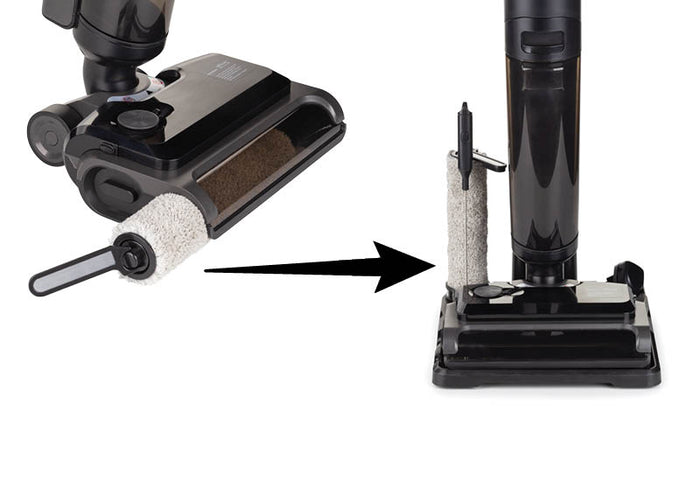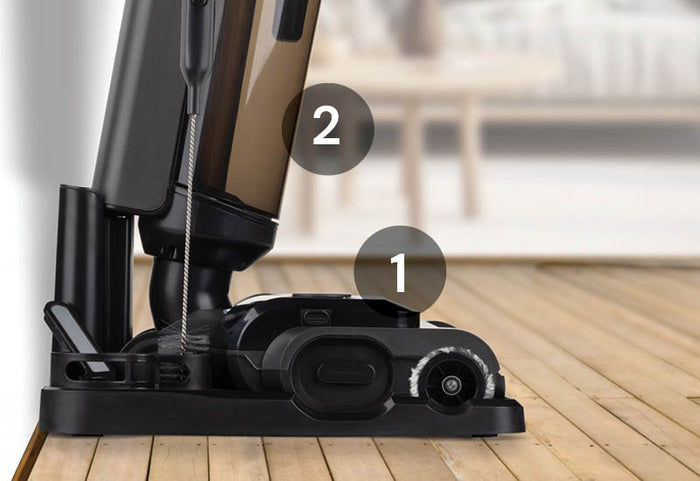 Po zakończeniu czyszczenia podłóg wystarczy umieścić odkurzacz na stacji ładującej i włączyć funkcję samooczyszczania. Dzięki temu przygotujesz wałek szczotki do ponownego użycia bez pozostawiania plam, a samoczyszczenie zapobiegnie także powstawaniu wilgotnego zapachu.
