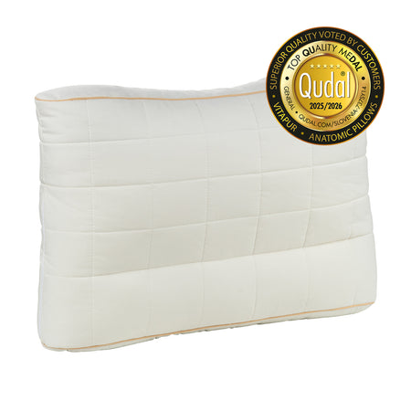 - Anatomiczna poduszka zapewniająca doskonałe podparcie we wszystkich pozycjach snu.
