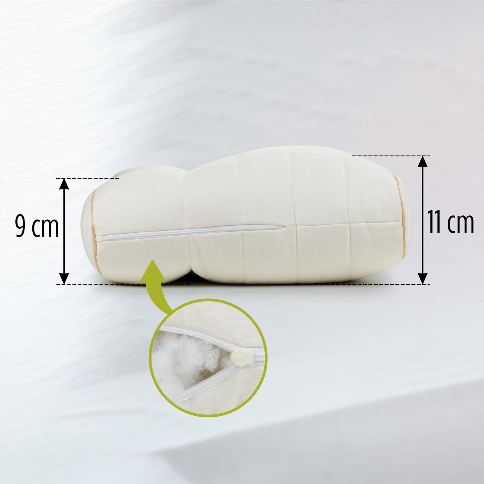 - Indywidualna regulacja wysokości pozwala dostosować poduszkę do swoich upodobań i pozycji snu.