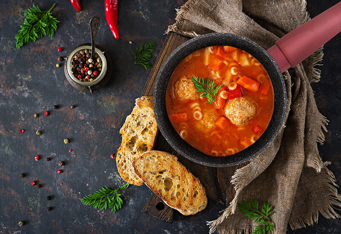 - Nieprzywierająca, chropowata powłoka mineralna pozwala na gotowanie z minimalną ilością tłuszczu, dzięki czemu Twoje potrawy smakują zdrowo i zachowują wszystkie składniki odżywcze podczas gotowania.