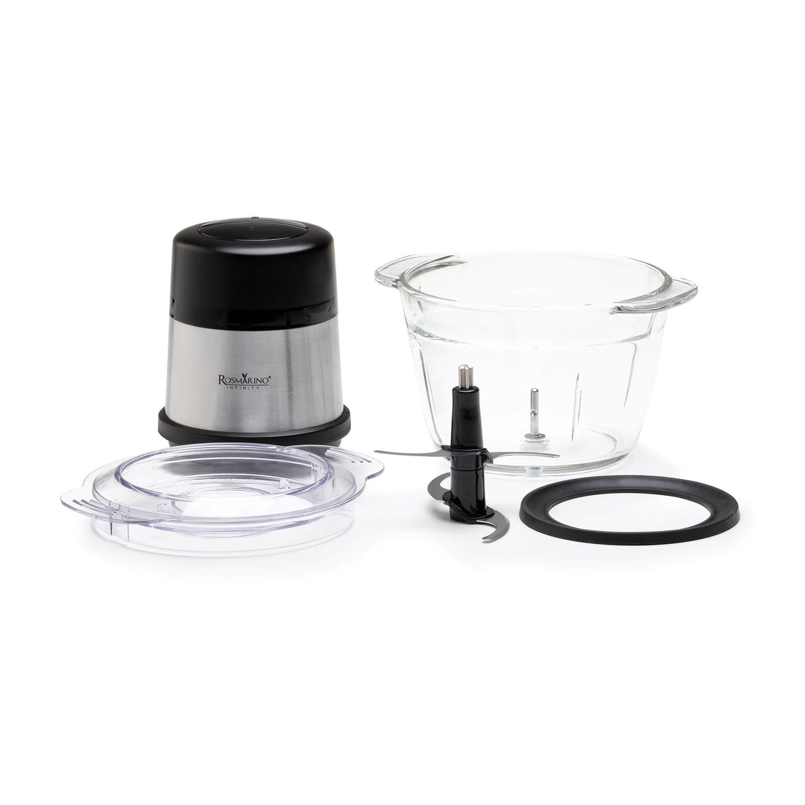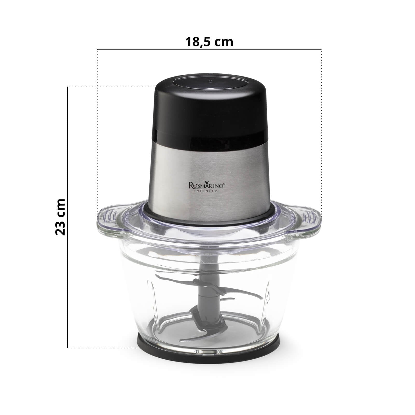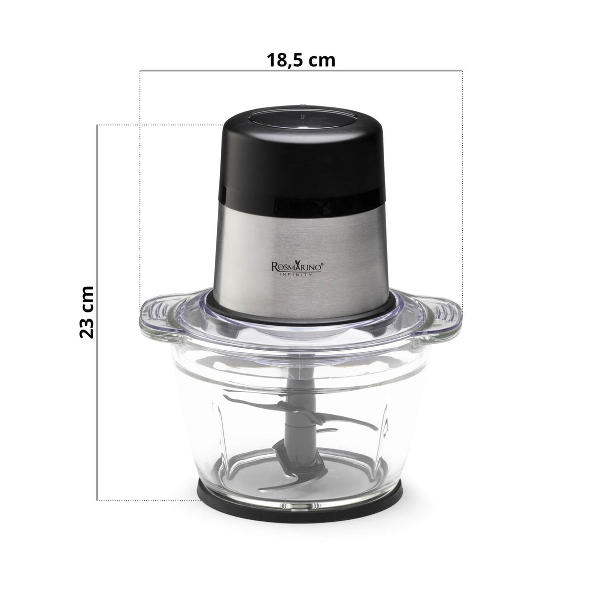 Rozdrabniacz Rosmarino Infinity będzie Twoim nowym pomocnikiem do siekania wszelkiego rodzaju żywności i artykułów spożywczych, nawet tych najtwardszych. Ostrza ze stali nierdzewnej umożliwiają siekanie i szatkowanie różnych warzyw, owoców, mięsa, chleba, orzechów oraz lodu! Moc silnika 300 W, 2 prędkości i dodatkowa funkcja pulsacyjna zachwycą Cię łatwym i zdrowym przygotowywaniem potraw. W przestronnej szklanej misce o pojemności 1 litra z łatwością posiekasz produkty dla całej rodziny. Świetnie nadaje się również do przygotowania posiłków dla dzieci w jednej misce. Minimalistyczny design w kolorze czarnym i inox zachwyci również wszystkich miłośników elegancji w kuchni.