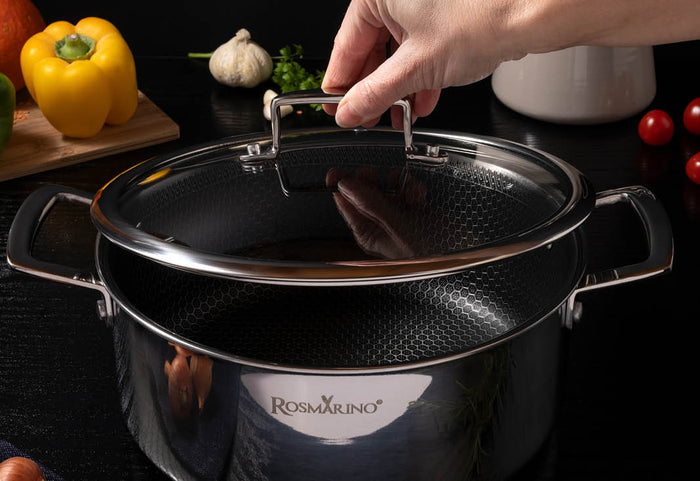 Pokrywka Rosmarino HexaPRO sprawdzi się doskonale w wielu procesach kuchennych. Używaj go do gotowania na kuchence, w piekarniku do 220°C lub do przechowywania potraw w lodówce.