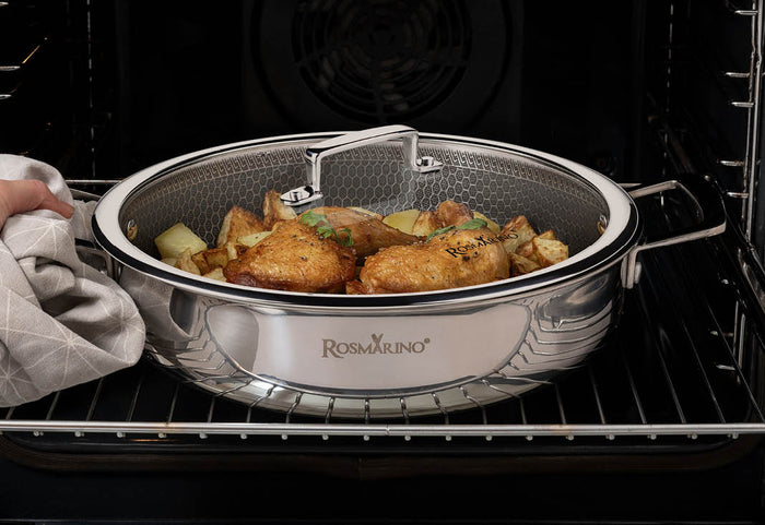Pokrywka Rosmarino HexaPRO sprawdzi się doskonale w wielu procesach kuchennych. Używaj go do gotowania na kuchence, w piekarniku do 220°C lub do przechowywania potraw w lodówce.