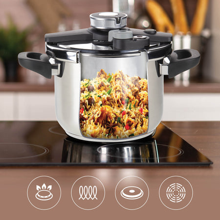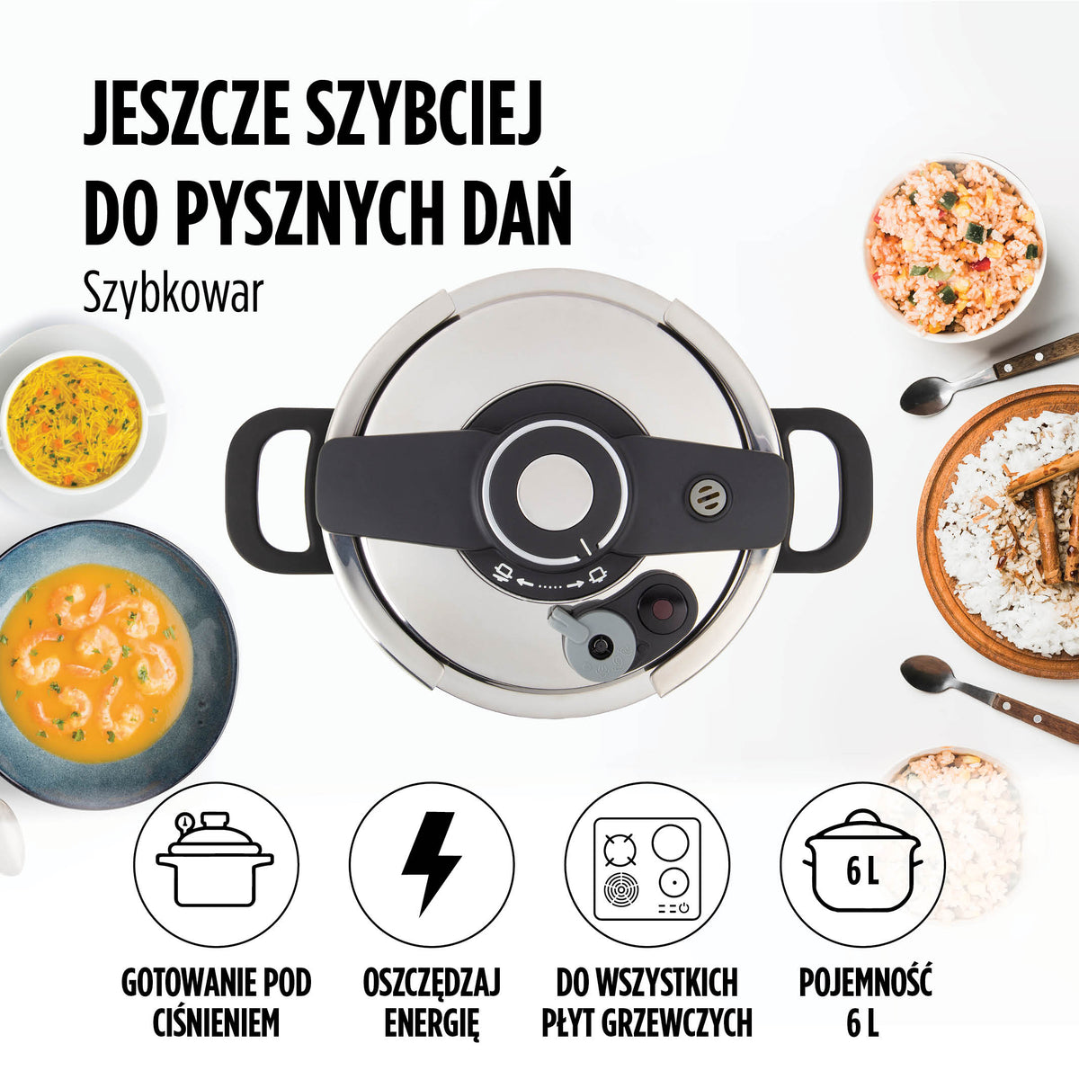 - Oszczędzaj czas i energię dzięki gotowaniu pod ciśnieniem.
