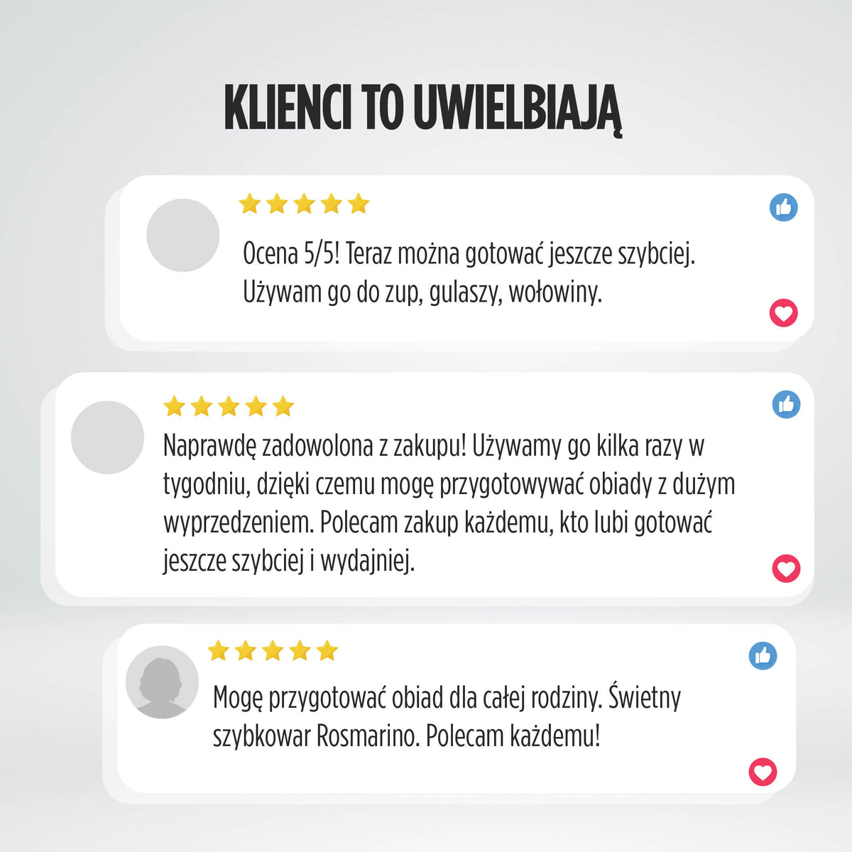 Szybkowar Pour&Cook Rosmarino pomoże Ci gotować szybciej i oszczędniej. Dzięki specjalnej technologii gotowania pod ciśnieniem, posiłki dla całej rodziny będą przygotowane szybciej, będą smakować lepiej i zachowają więcej składników odżywczych. Można go używać do różnych potraw. Nadaje się do użytku na wszystkich rodzajach płyt grzewczych i jest łatwy w czyszczeniu.