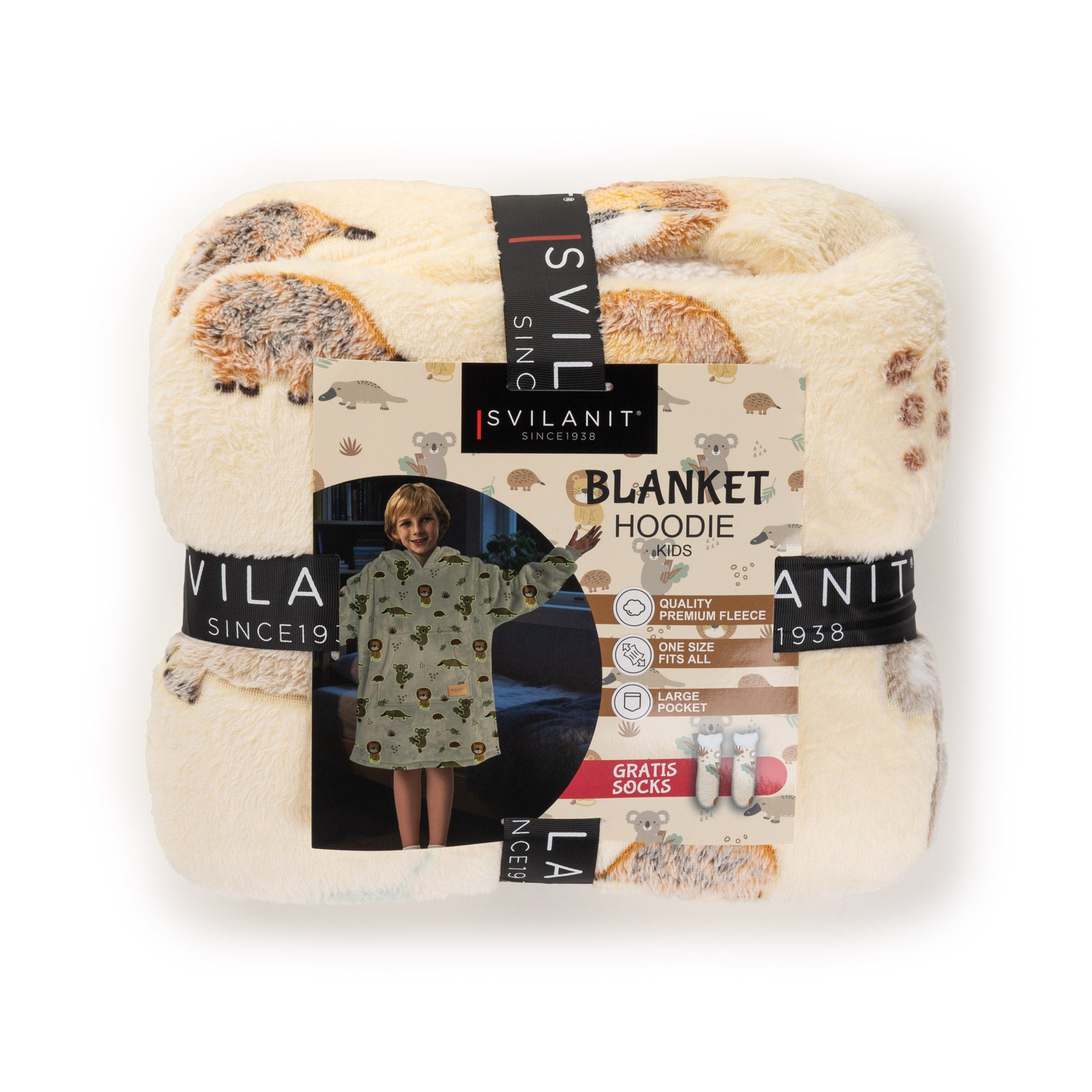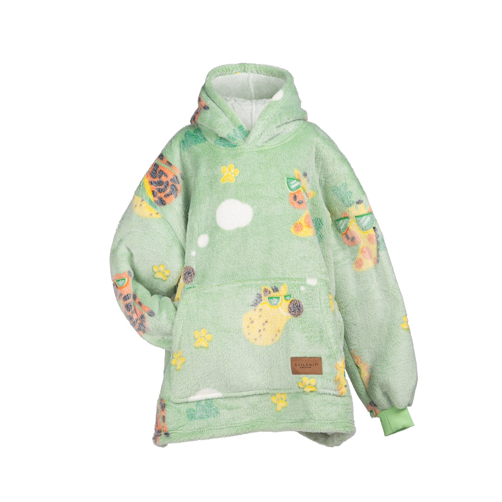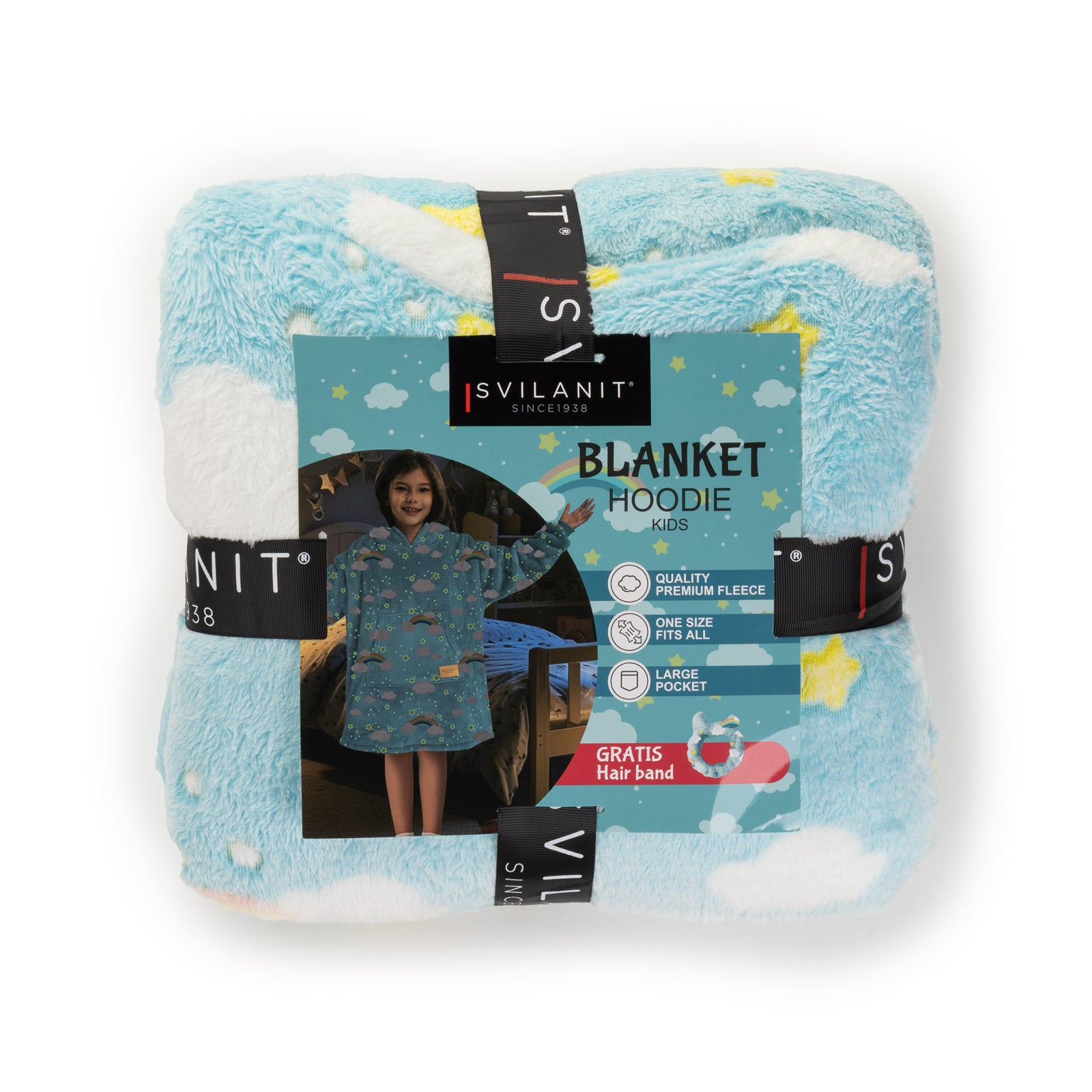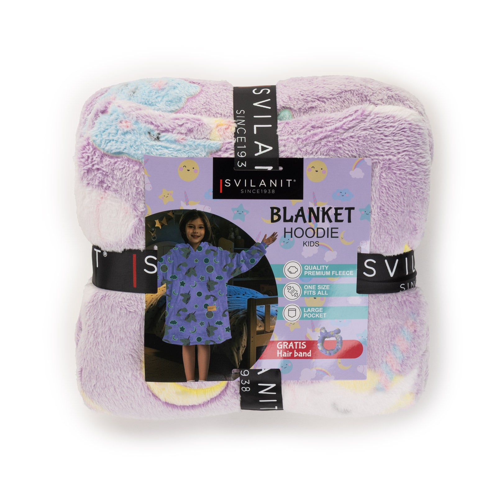 Wyobraź sobie: dziecko leży na kanapie i ogląda bajki, a Ty przykrywasz je kocem, żeby nie zmarzło. Jednak już w następnej chwili koc zostaje zrzucony, bo dzieci rzadko potrafią usiedzieć spokojnie. Albo siedzi na podłodze z zimnymi rękami i stopami, bo koc przeszkadza w zabawie. Rozwiązaniem jest koc z kapturem i rękawami Svilanit. Ten miękki, puszysty „sweter” sprawia, że dzieciom jest ciepło w każdej chwili – zarówno podczas odpoczynku, jak i biegania po domu. Dzięki kapturowi i szerokim rękawom koc zawsze pozostaje na miejscu i daje poczucie, jakby dziecko było w ciepłych objęciach rodzica. Miękka tkanina przypomina pluszowe zabawki, więc dzieci będą nosić koc z uśmiechem, a rodzice mogą być spokojni, wiedząc, że ich dziecko nie marznie. Dodatkowo dzieci zachwycą się zabawnymi wzorami, z których większość świeci w ciemności. Sweter, koc i zabawka w jednym – najlepsze połączenie dla szczęśliwych dzieci i zadowolonych rodziców.