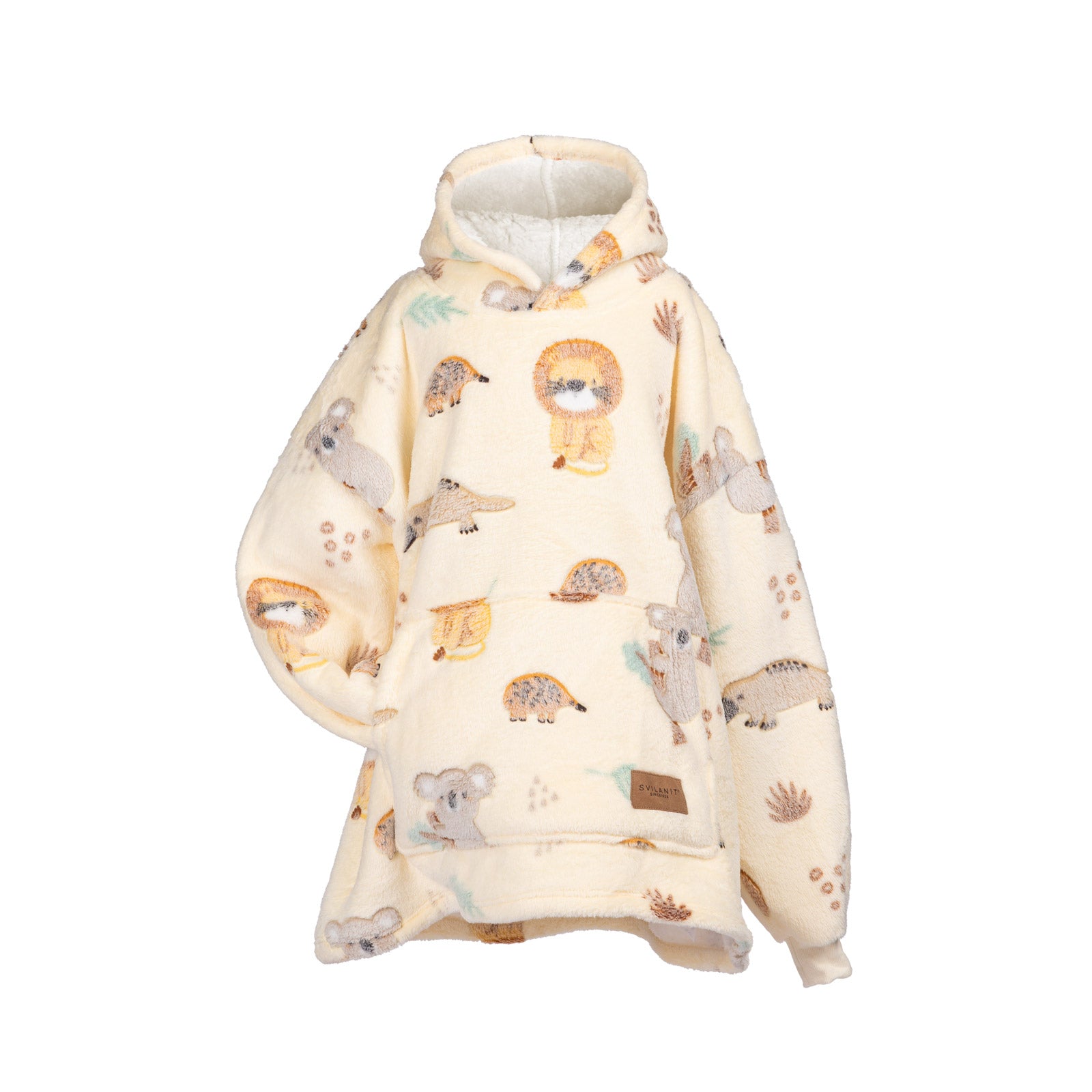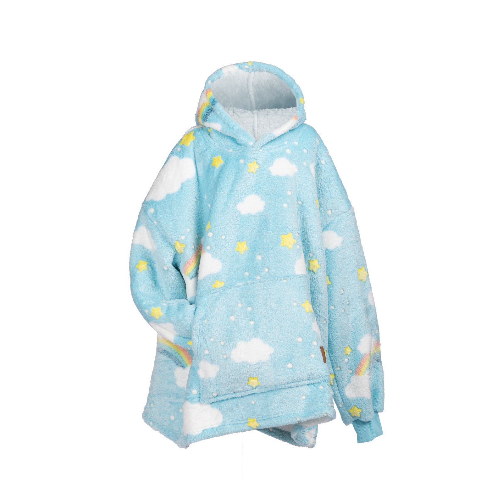 • Dzieci czują się jak w magicznej pelerynie, gdy zakładają puszysty koc z kapturem.