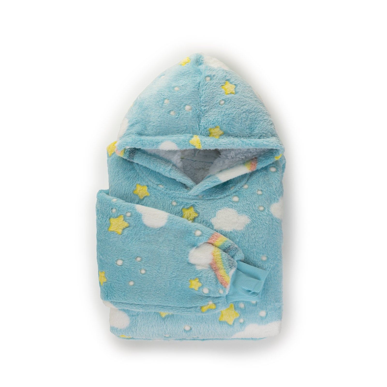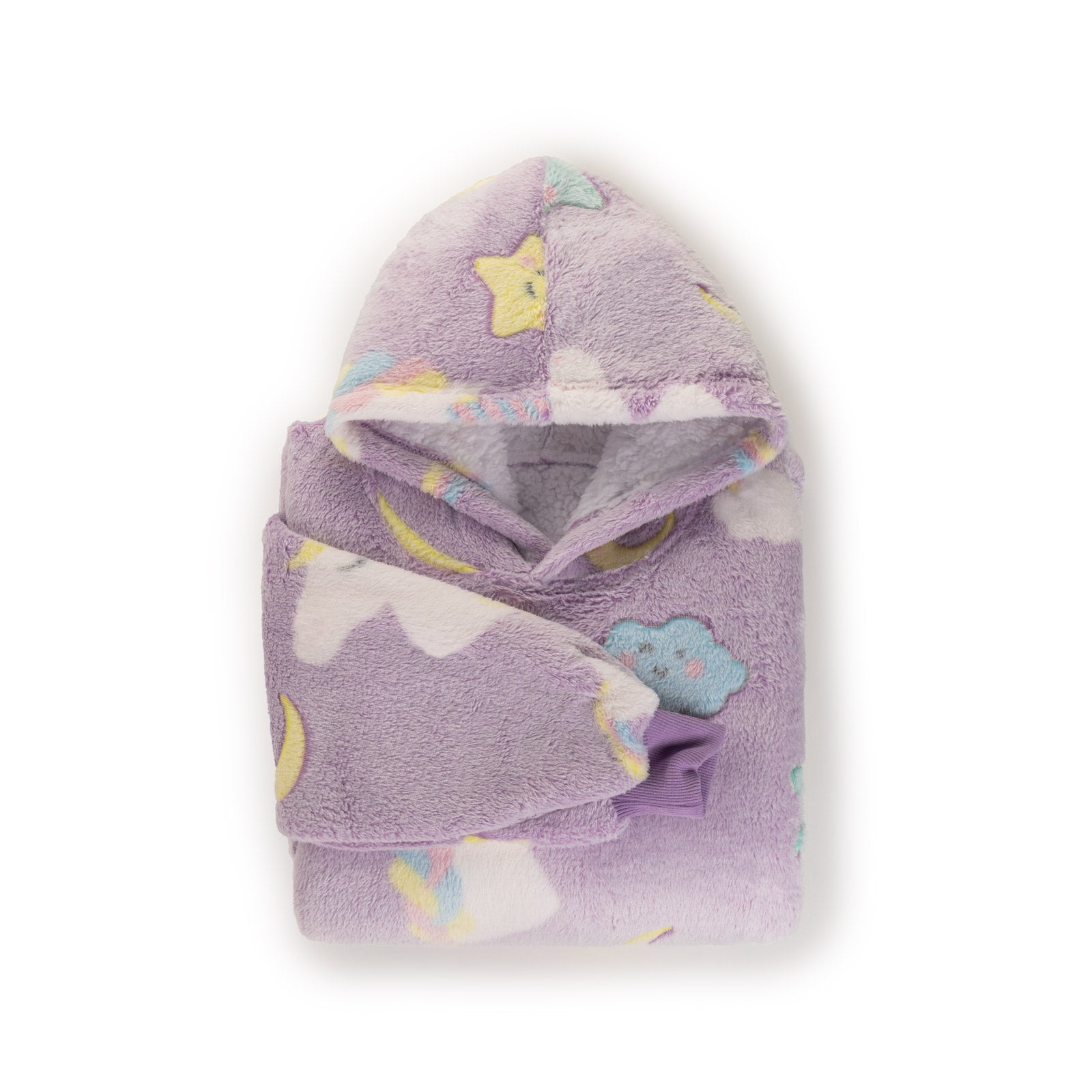 Dzieci uwielbiają wcielać się w małych czarodziejów. Długi koc z kapturem i szerokimi rękawami przypomina czarodziejską pelerynę, a elementy świecące w ciemności dodają długim zimowym wieczorom wyjątkowej magii. Zabawne wzory pobudzają dziecięcą wyobraźnię, a miękka tkanina zapewnia komfort podczas zabawy.