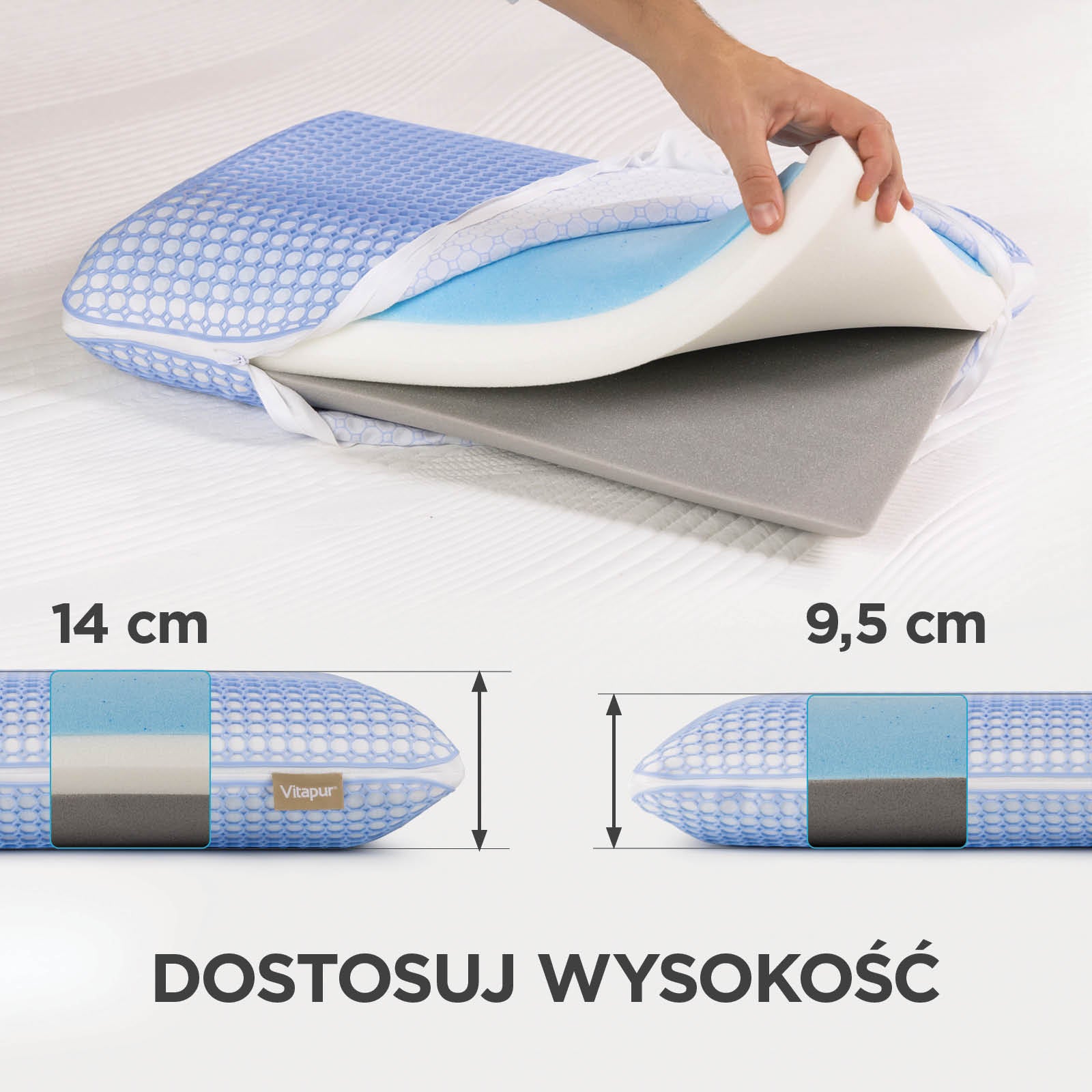 - Środkową warstwę pianki memory można wyjąć, aby szybko dostosować wysokość poduszki.