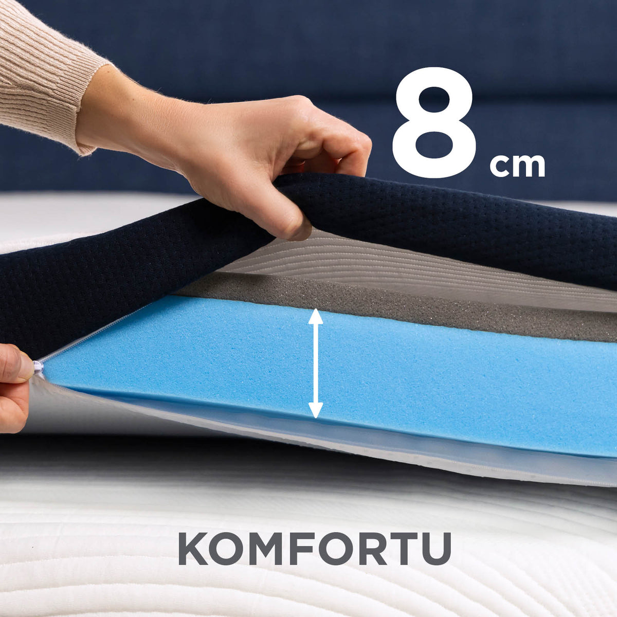 - 8-centymetrowy hybrydowy topper zapewnia idealny komfort i oddychalność na każdej powierzchni do spania i w każdej pozycji.
