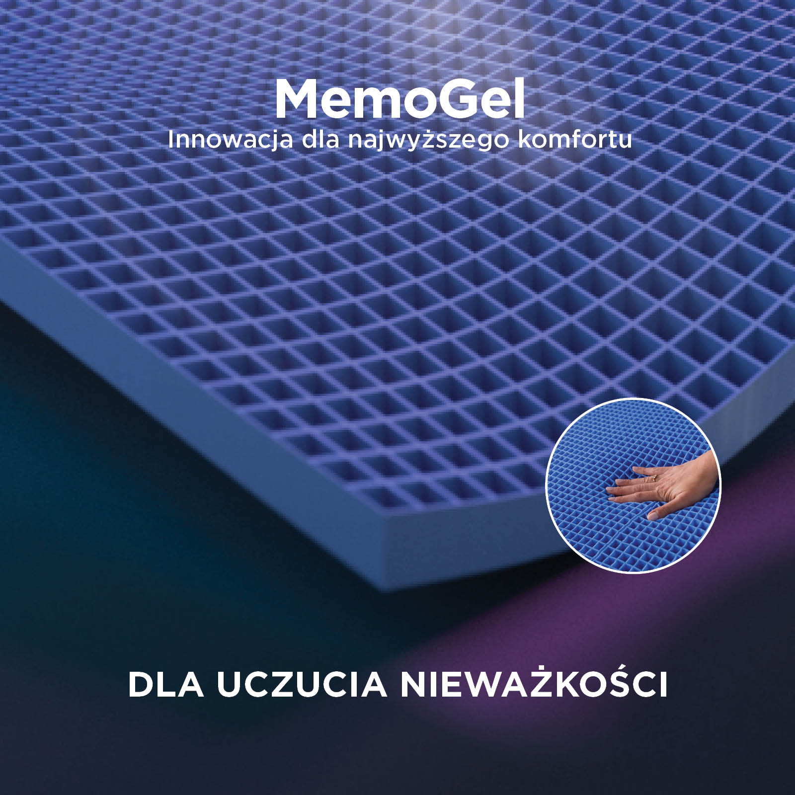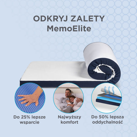 - Innowacyjny materiał MemoGel oferuje do 25% lepsze podparcie i do 50% lepszą oddychalność w porównaniu do standardowej pianki z pamięcią.