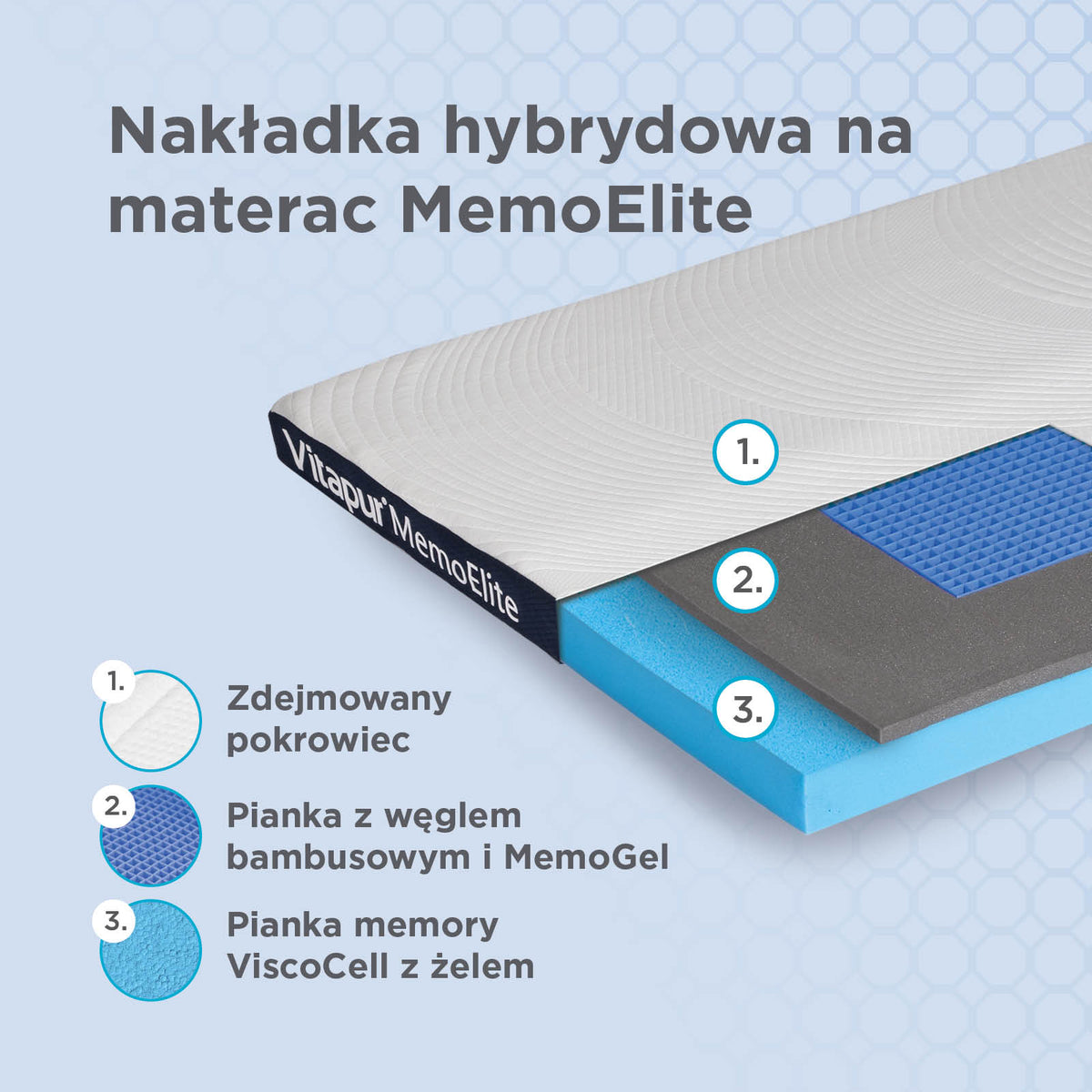 Hybrydowy topper na materac Vitapur MemoElite – 8 cm