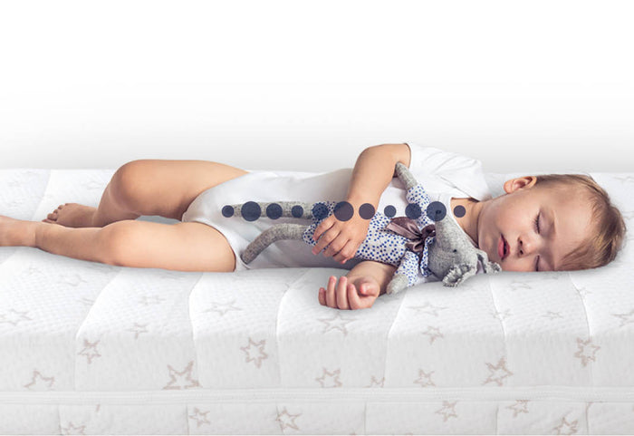 Mój pierwszy materac zapewnia bardzo dobre podparcie kręgosłupa dziecka podczas całego procesu rozwoju i utrzymuje go w prawidłowej pozycji przez cały czas. Bez względu na to, w jakiej pozycji śpi dziecko, materac wspiera jego ciało we wszystkich pozycjach.