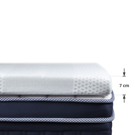 - Dodatkowa warstwa pianki z pamięcią kształtu idealnie dopasowuje się do kształtu oraz wagi ciała, dzięki czemu rzadziej się przebudzamy.