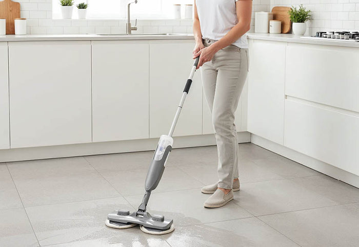 Rozlany sok? Okruszki po obiedzie? Bez paniki. Mop ze spryskiwaczem Vitapur Duo Clean to wszystko, czego potrzebujesz, aby w mgnieniu oka mieć nieskazitelnie czyste podłogi. Bez wiadra, bez prądu i bez schylania się. Wystarczy nacisnąć, spryskać i przetrzeć dwiema 360° obrotowymi ściereczkami z mikrofibry. Parkiet, płytki, panele laminowane czy winyl – lekki i skuteczny mop wyczyści wszystko. W przeciwieństwie do tradycyjnych mopów Duo Clean nie wymaga wiadra i nie pozostawia mokrej podłogi. W kilka minut Twój dom będzie lśnił, a Ty będziesz mógł cieszyć się filiżanką kawy, zabawą z dziećmi lub po prostu spokojem, jaki daje uporządkowany dom. Duo Clean – bo zasługujesz na czystość bez wysiłku i więcej czasu na to, co kochasz.