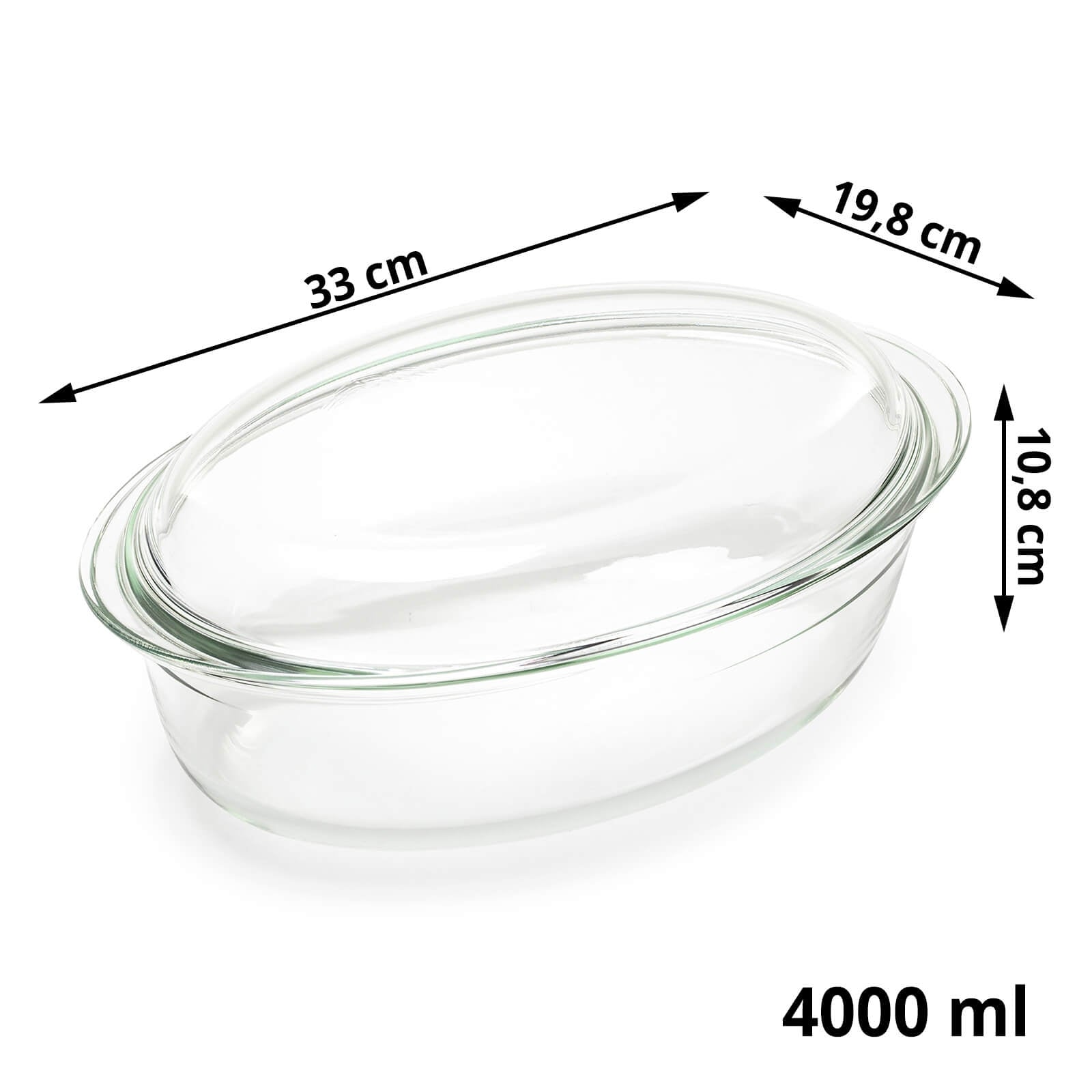 - Owalne szklane naczynie z pokrywką, pojemność 4000 ml.