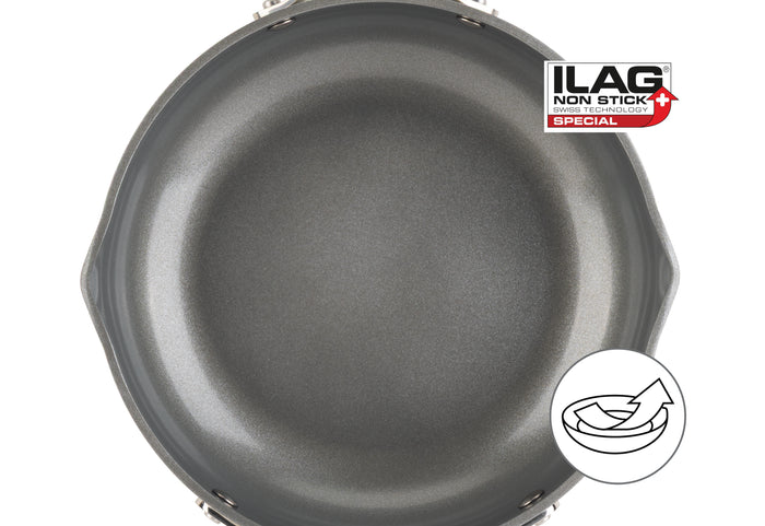 Wysokiej jakości ceramiczna powłoka ILAG Swiss Crystal sprawia, że potrawy nie przywierają do powierzchni i umożliwia przygotowanie dań z minimalną ilością tłuszczu.