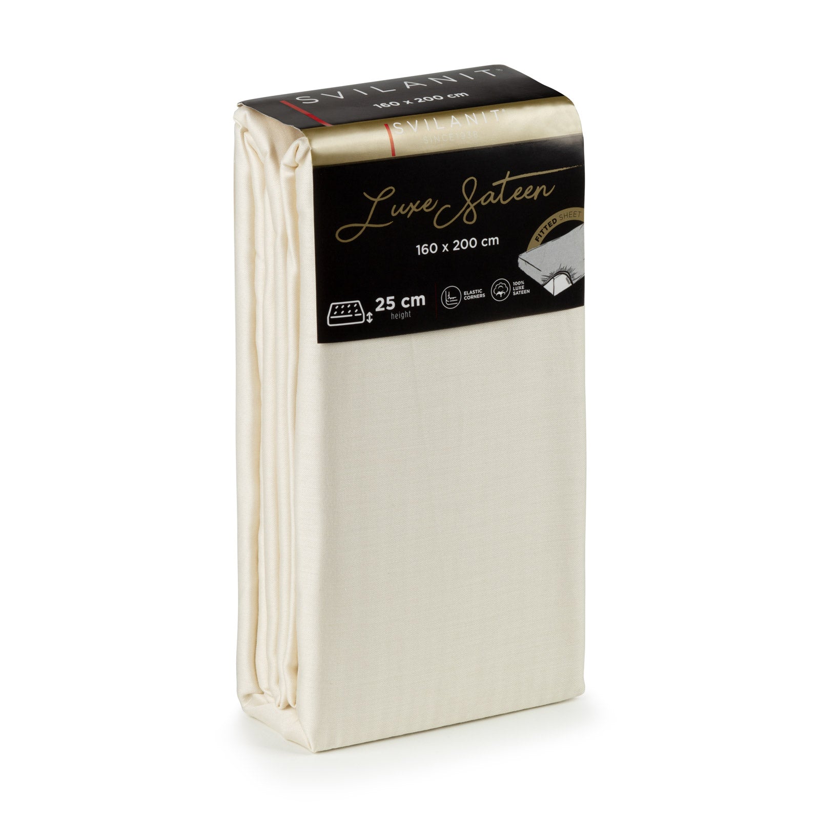 Ekskluzywne prześcieradło z gumką Svilanit Luxe Sateen przekona Cię perfekcyjnym dopasowaniem i miękkością 100% bawełny każdej nocy. Gumka wszyta w brzegi zapewnia idealne dopasowanie do materaca i łatwe zakładanie. Nadaje się również do wyższych materacy o wysokości do 25 cm. Miękka tkanina z bawełny satynowej oferuje najbardziej odprężający sen i delikatny dotyk dla skóry każdej nocy. Łatwe w utrzymaniu w czystości w 40 °C.
